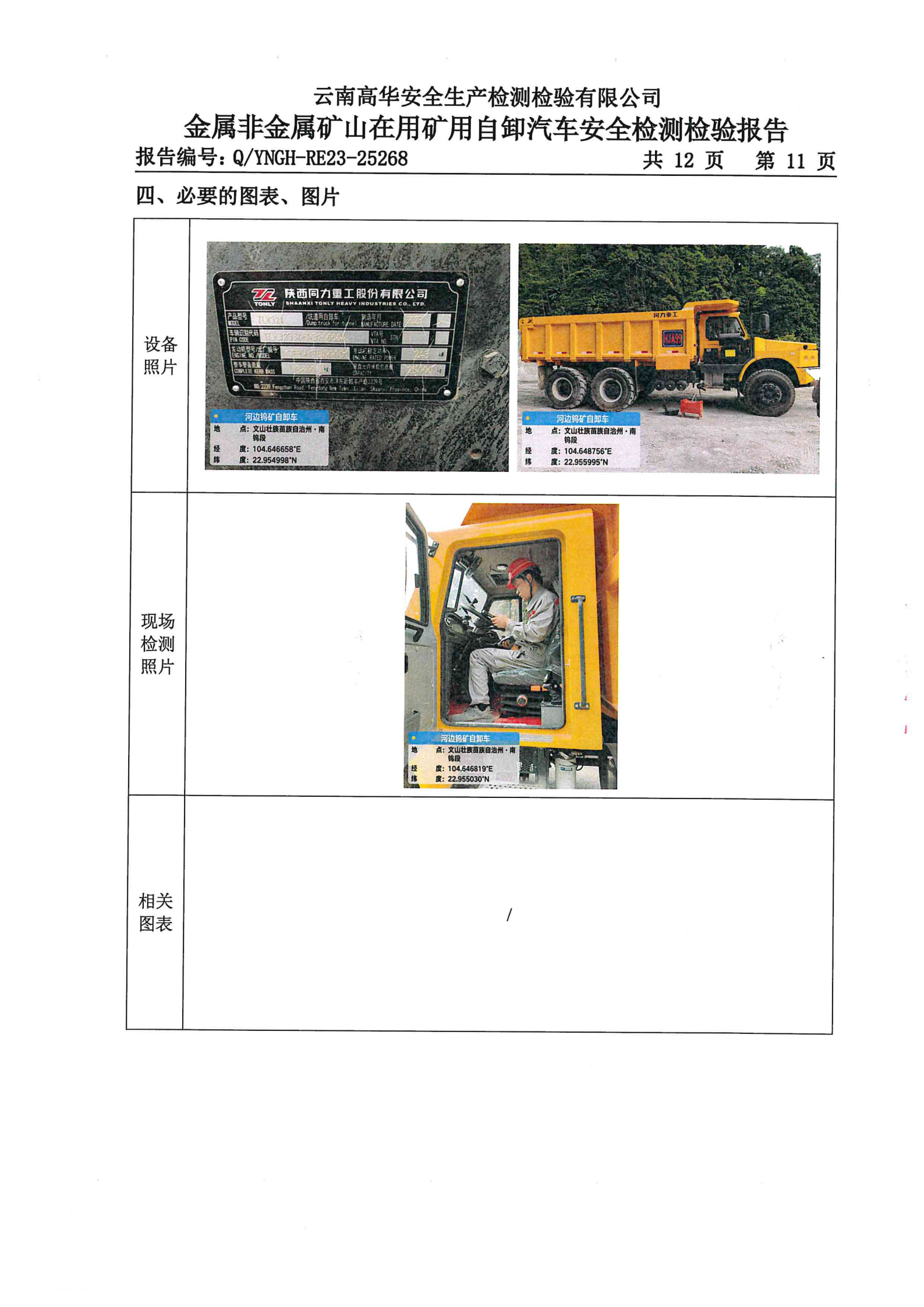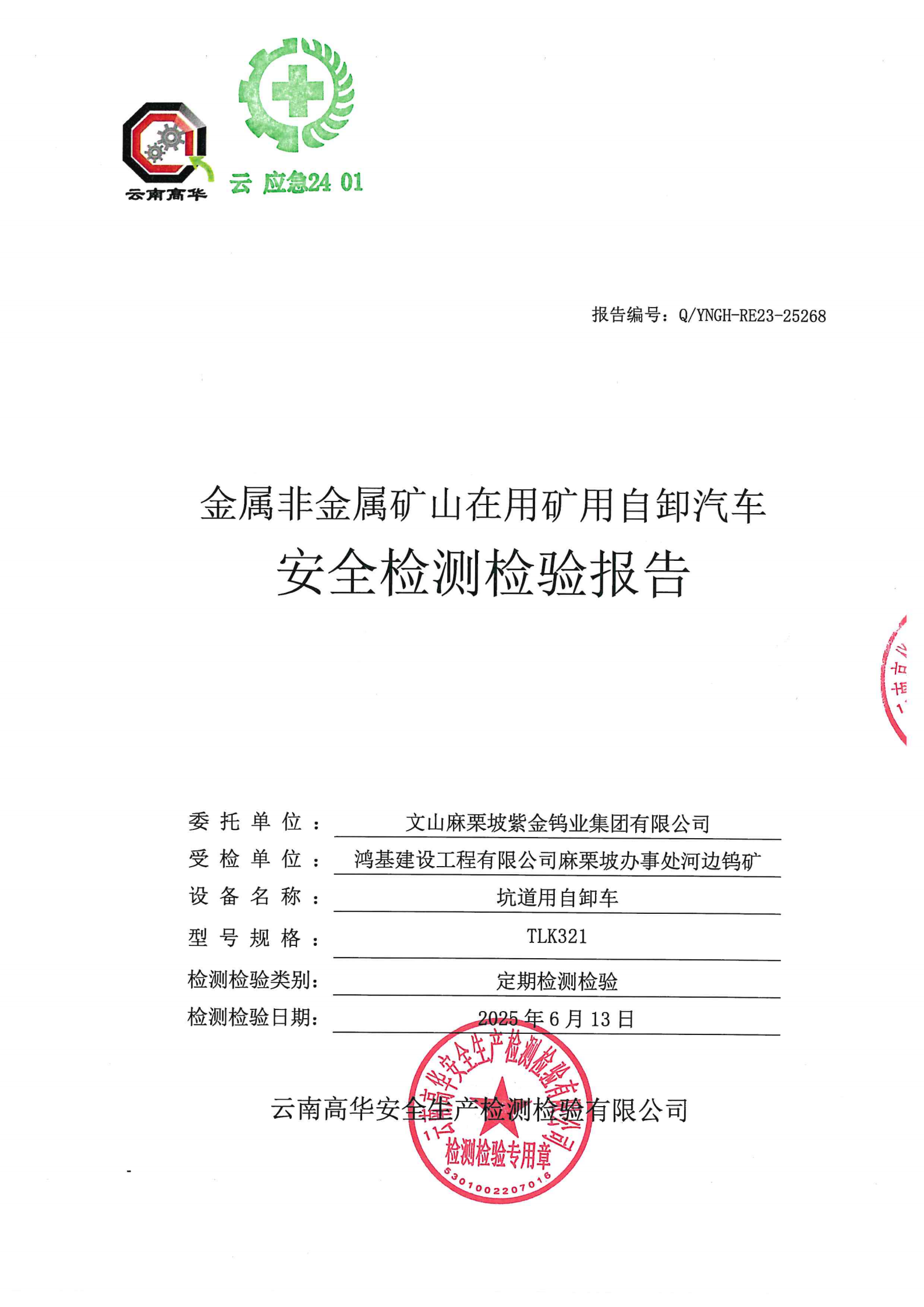 金属非金属在用矿用自卸汽车安全检测检验报告