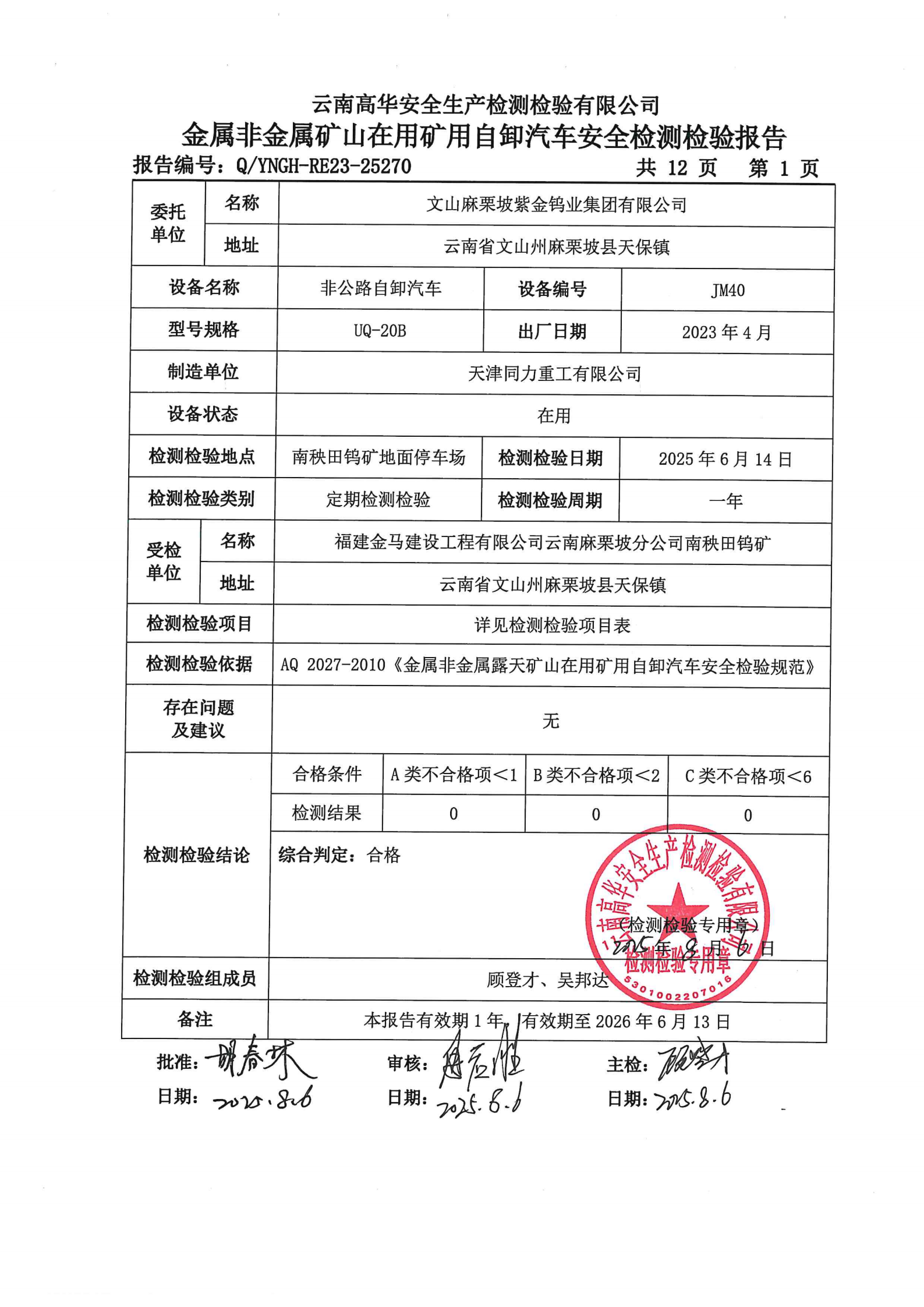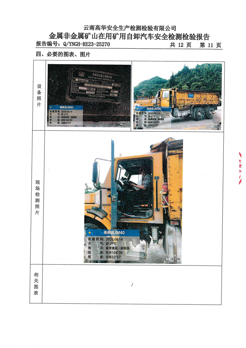 金属非金属在用矿用自卸汽车安全检测检验报告