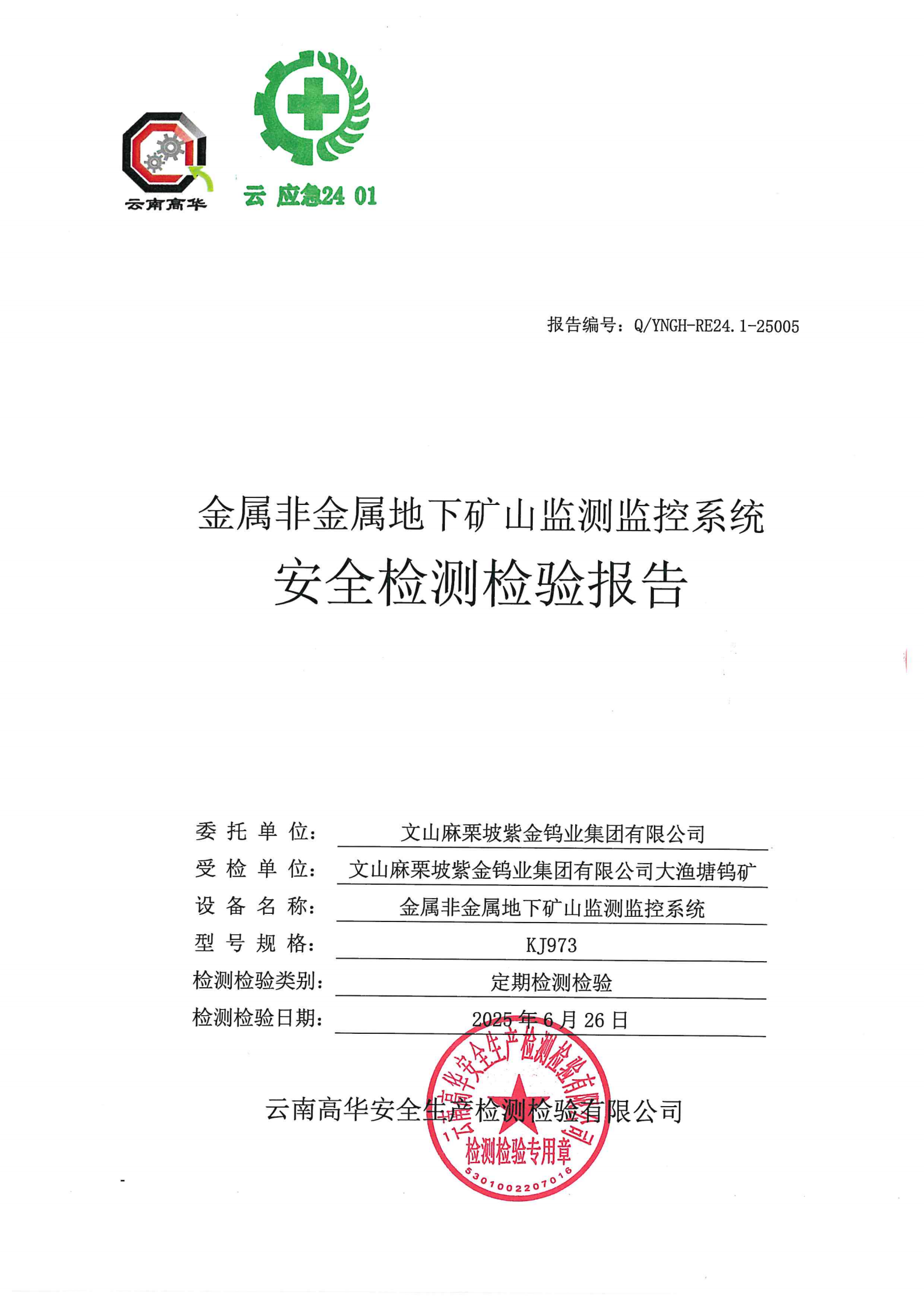 金属非金属地下矿山监测监控系统安全检测检验报告