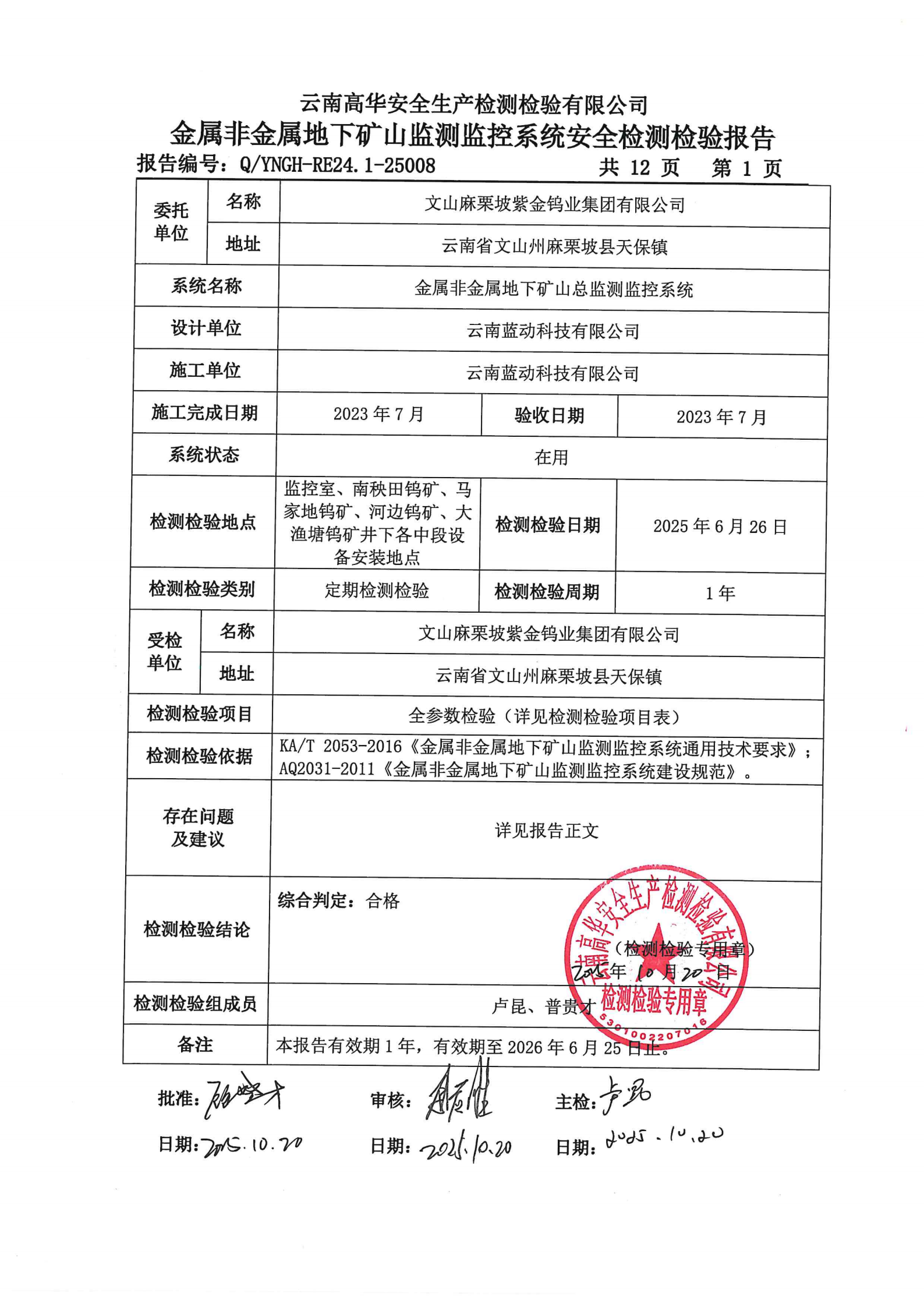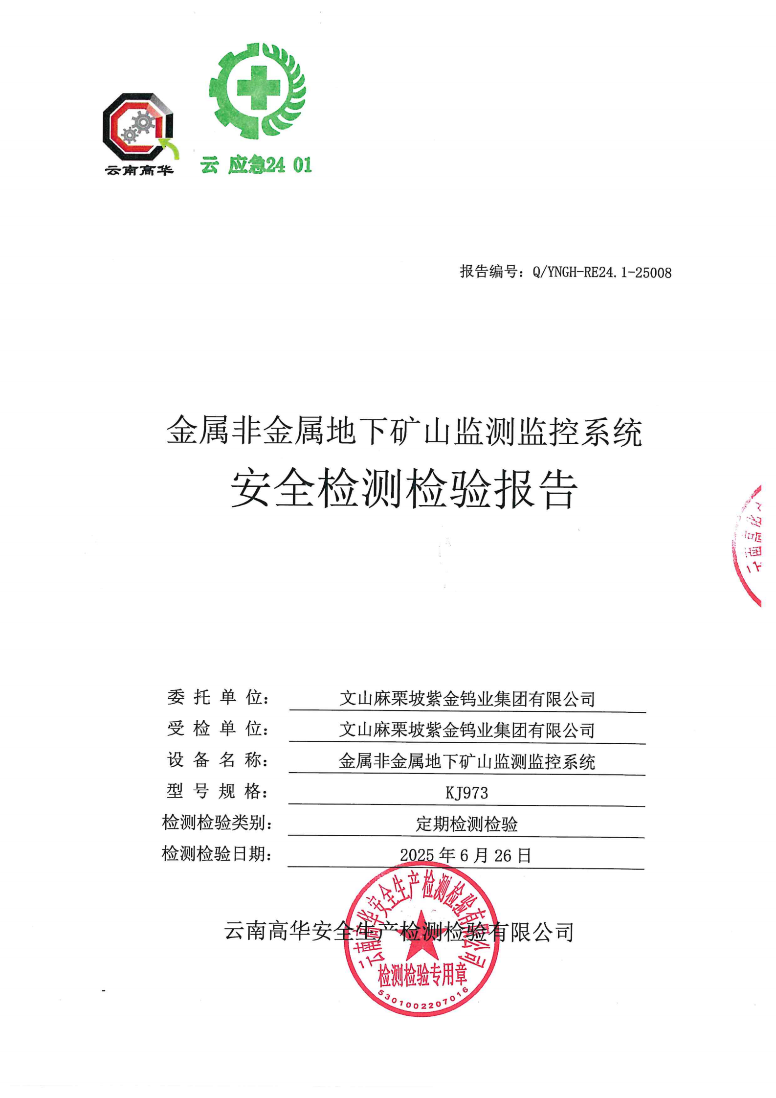 金属非金属地下矿山监测监控系统安全检测检验报告