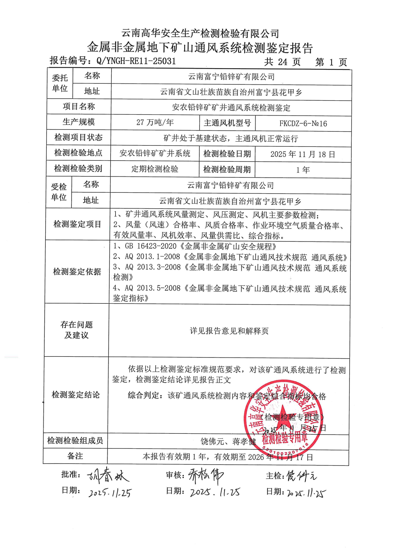 金属非金属地下矿山通风系统检测鉴定报告