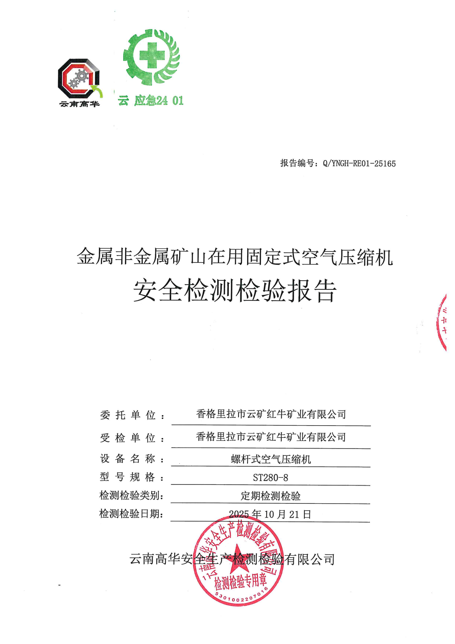 金属非金属矿山在用固定式空气压缩机安全检测检验报告