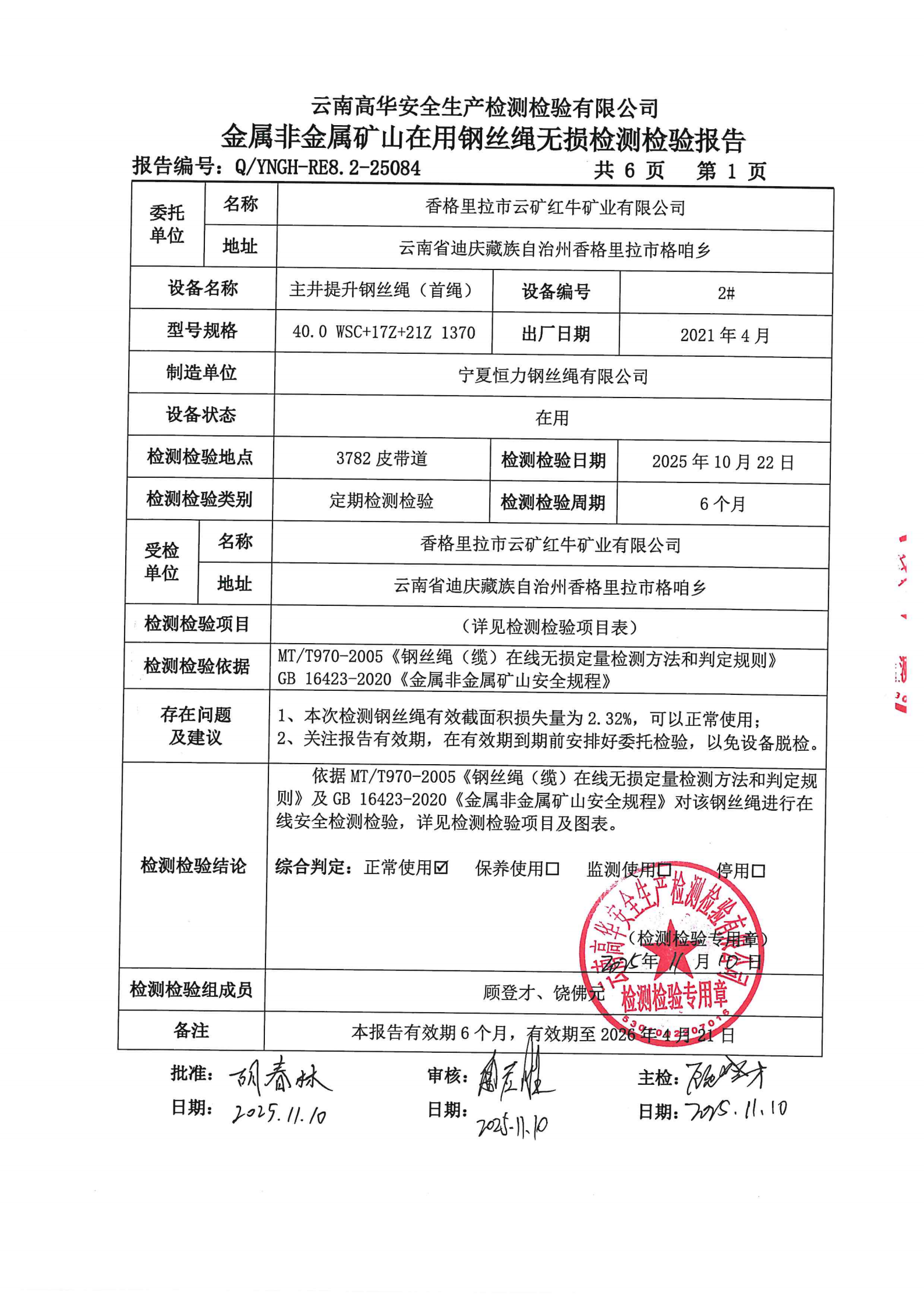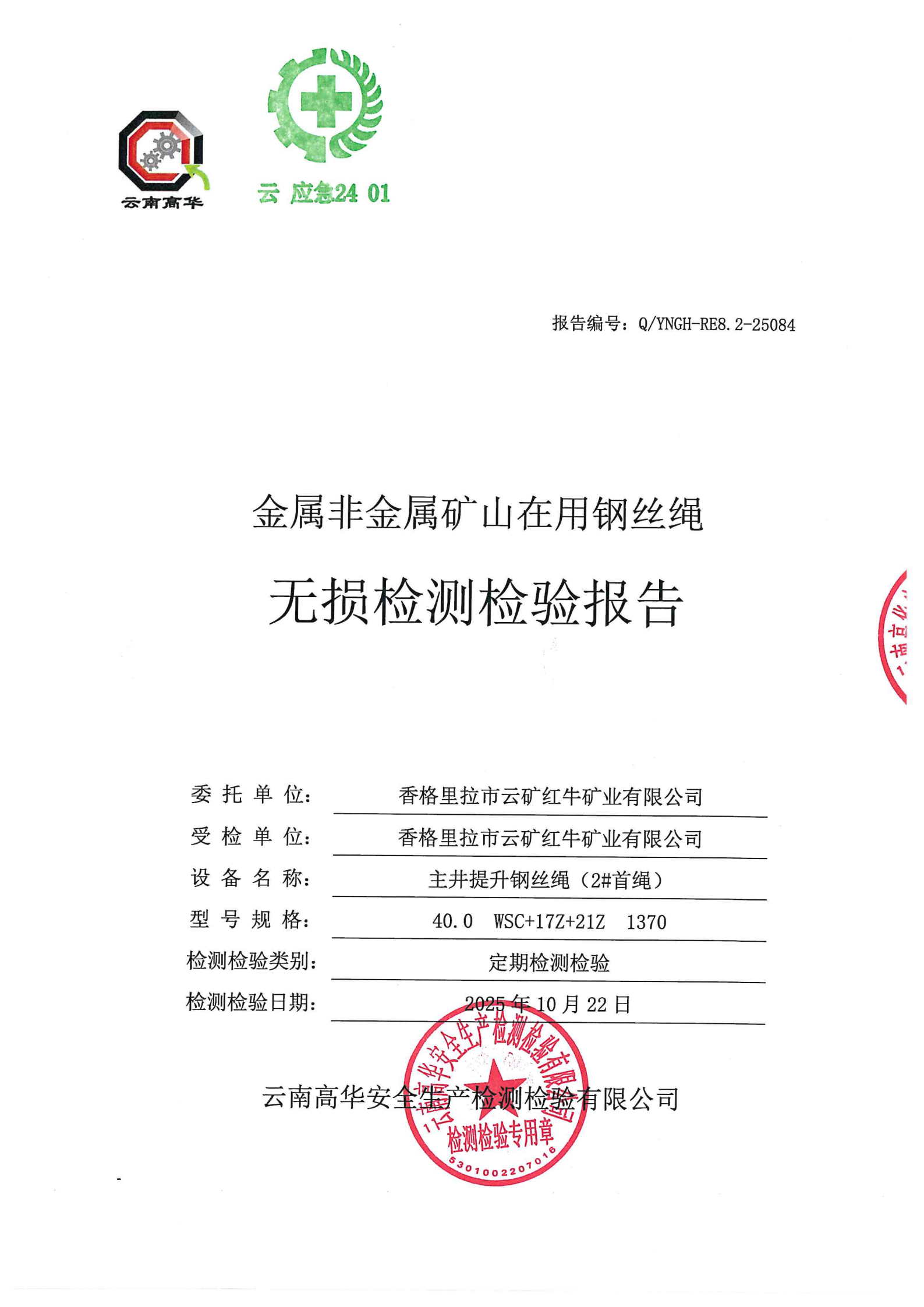 金属非金属矿山在用钢丝绳无损检测检验报告