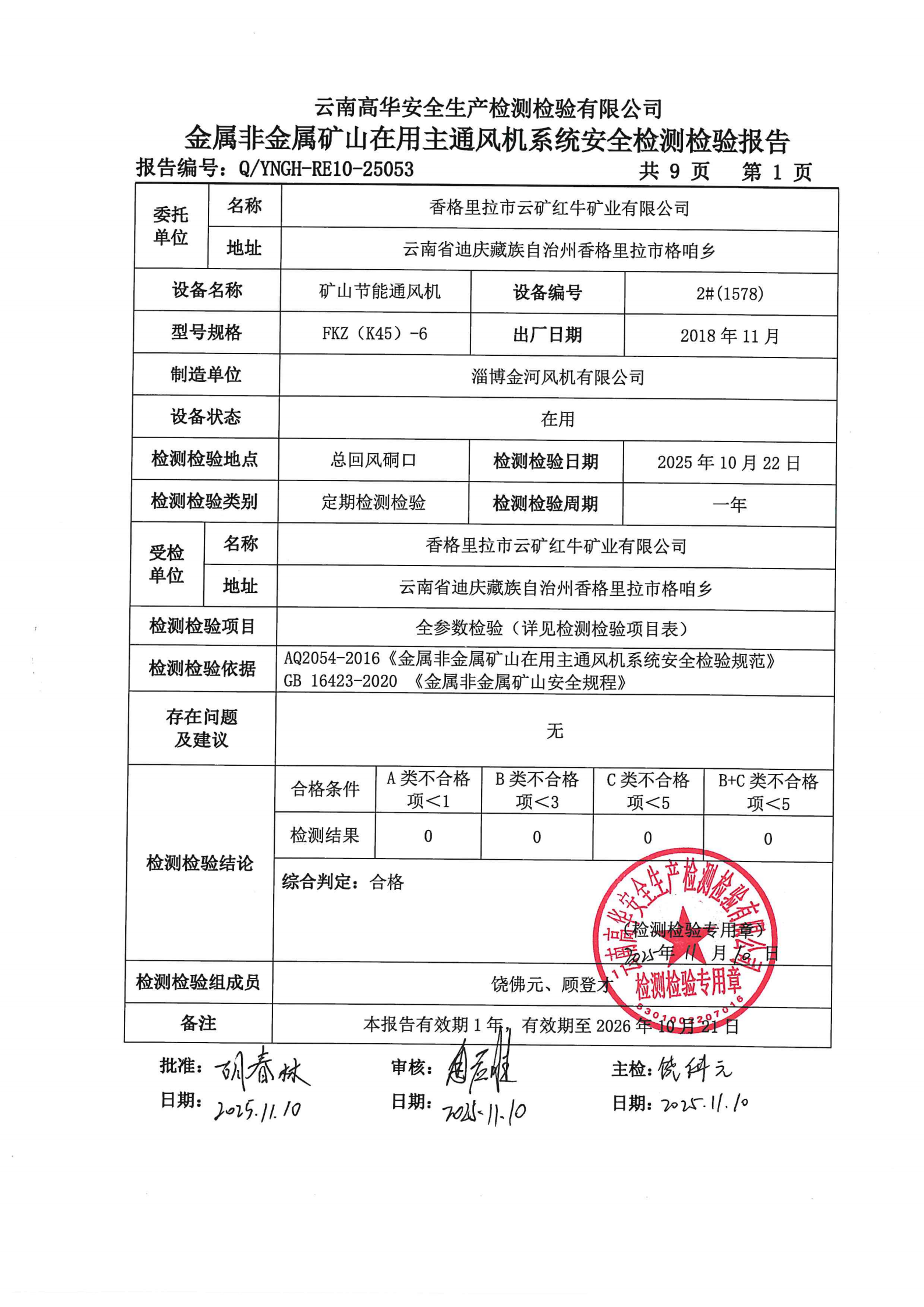 金属非金属矿山在用主通风机系统安全检测检验报告