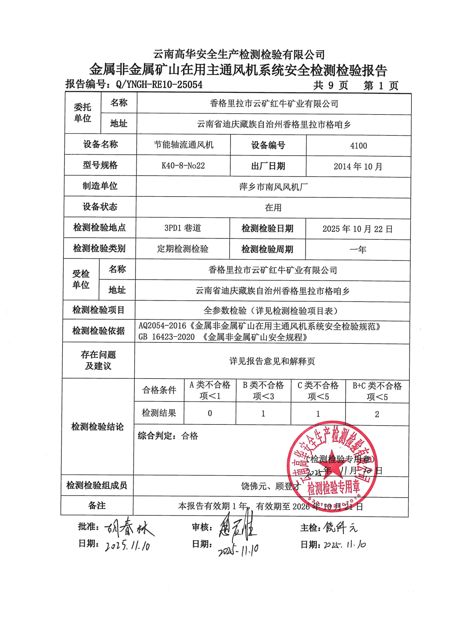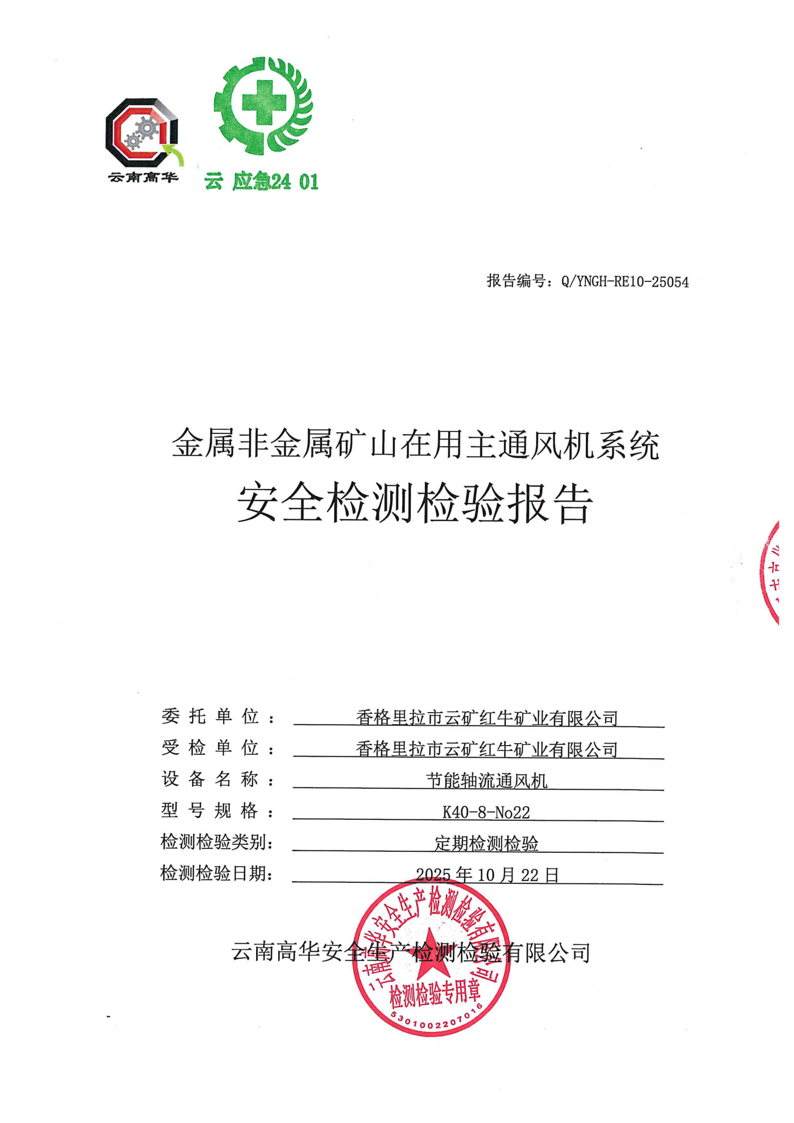 金属非金属矿山在用主通风机系统安全检测检验报告