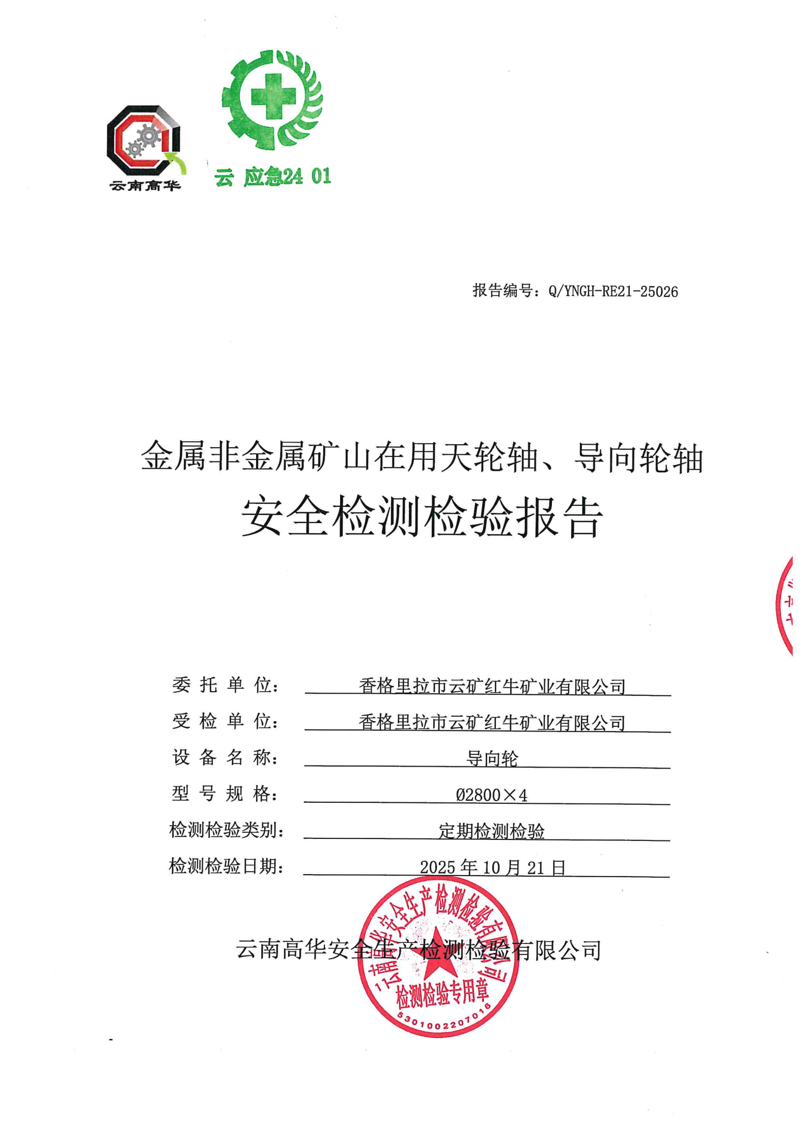 金属非金属矿山在用天轮轴、导向轮轴安全检测检验报告