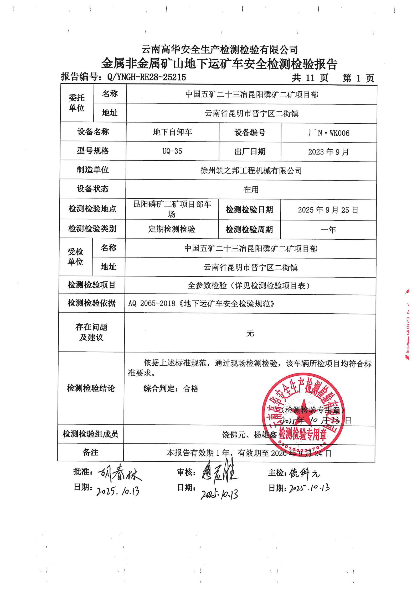 金属非金属矿山在用电力绝缘安全工器具安全检测检验报告