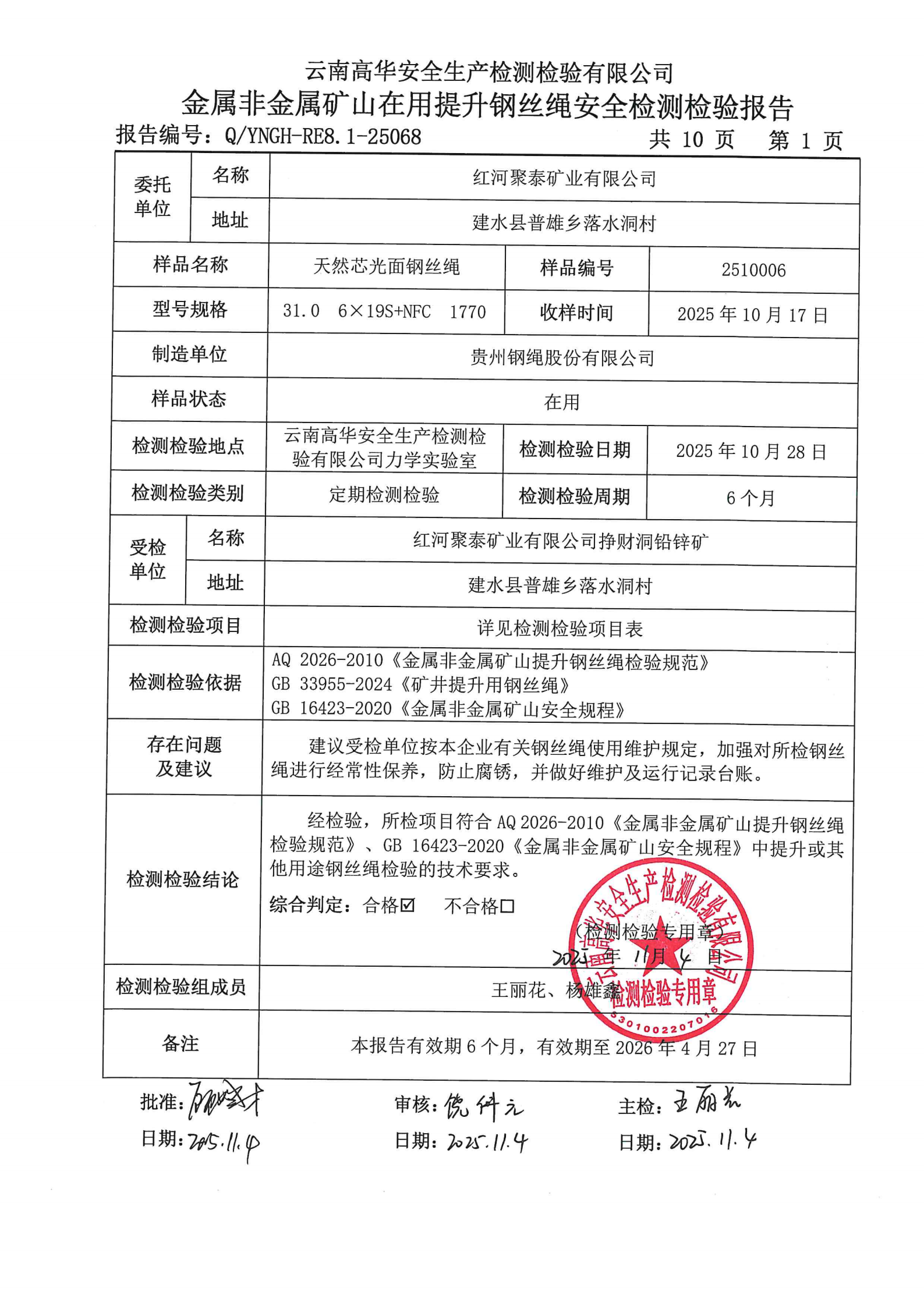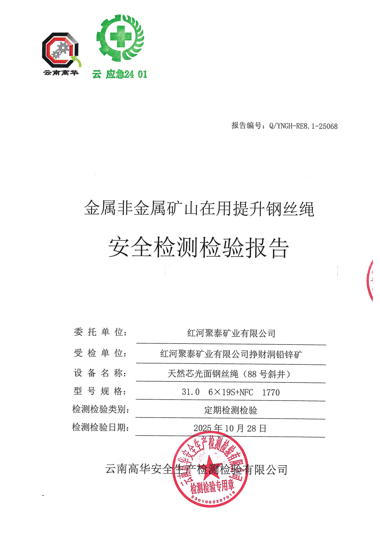 金属非金属矿山在用提升钢丝绳安全检测检验报告
