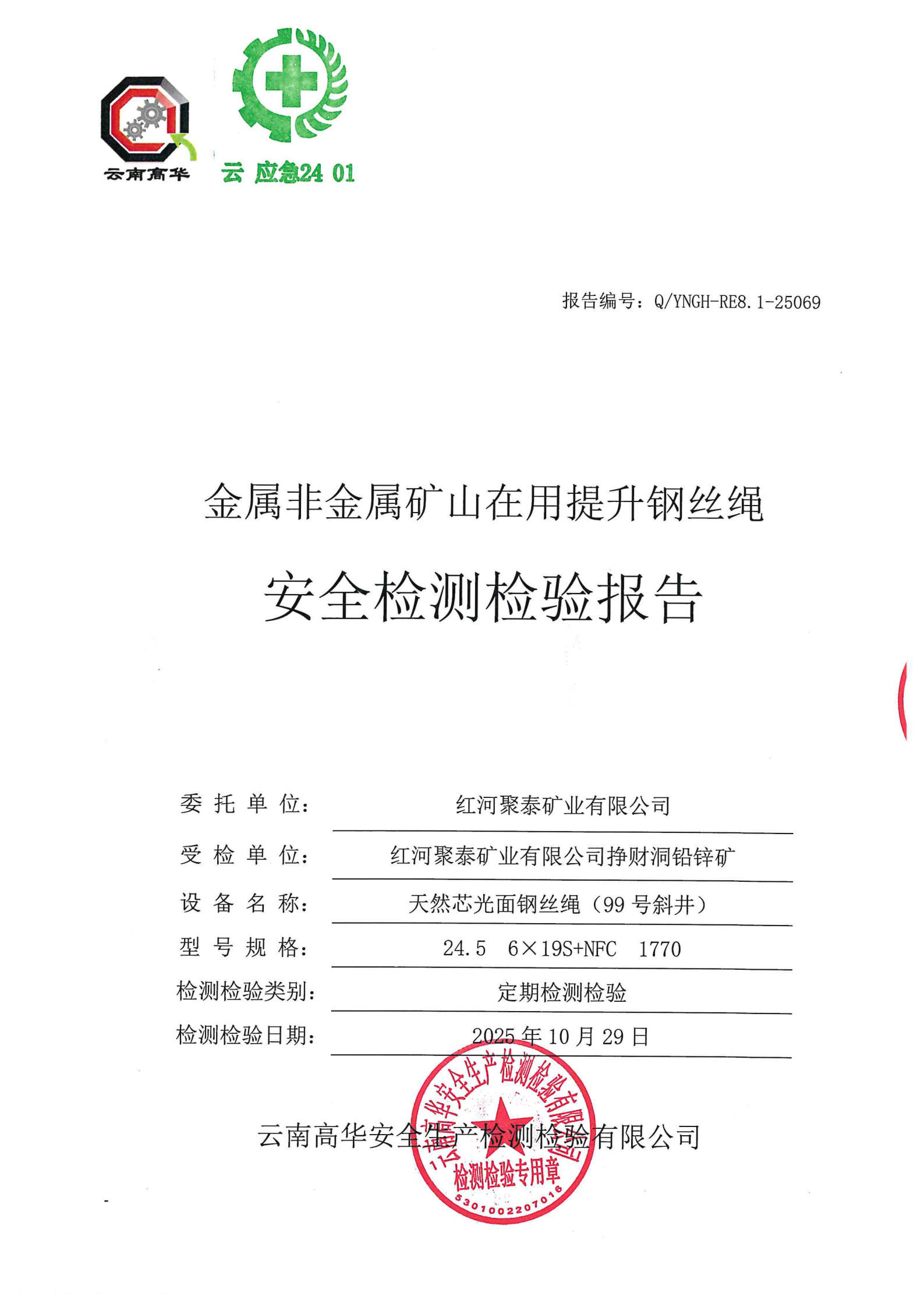 金属非金属矿山在用提升钢丝绳安全检测检验报告