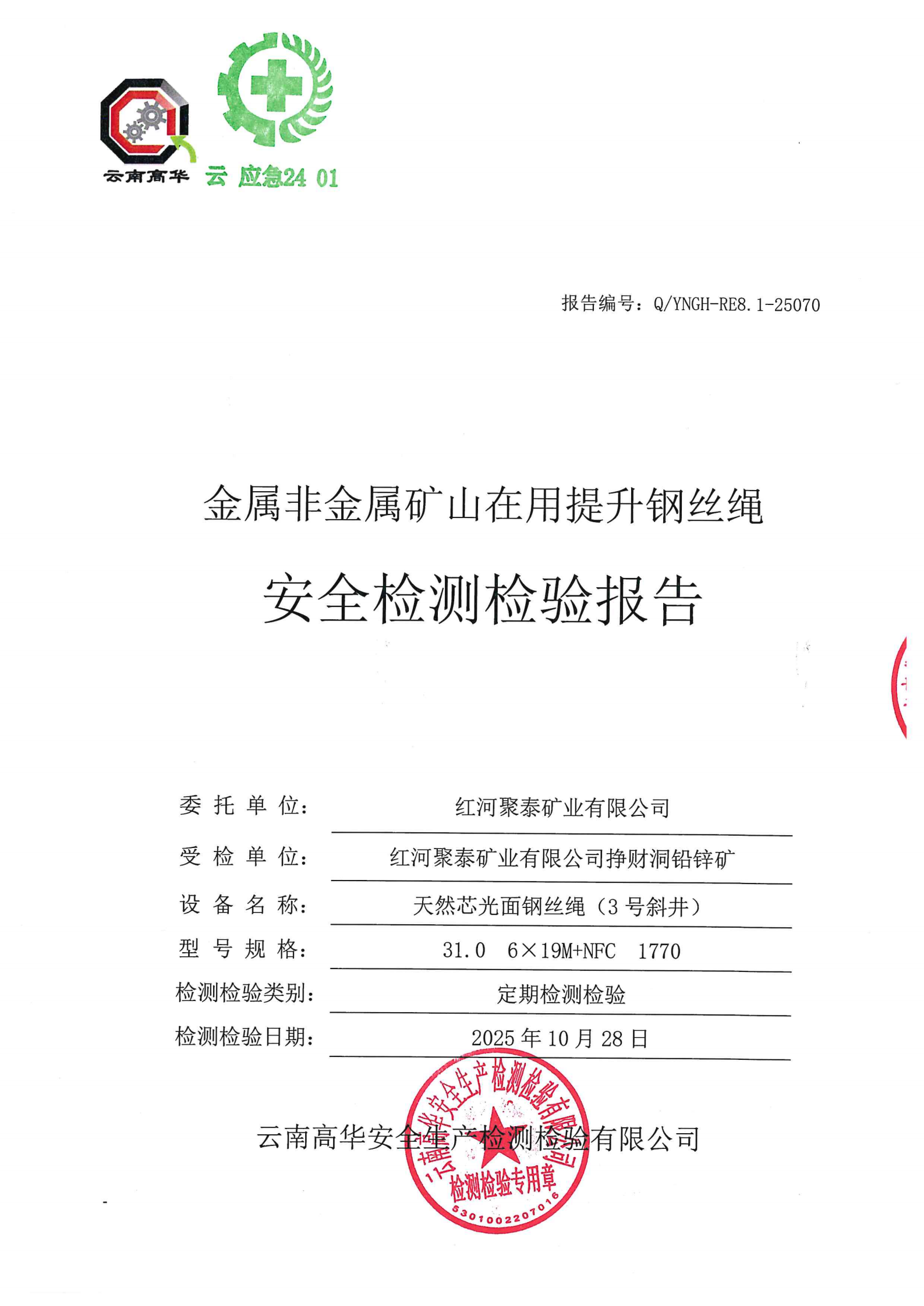 金属非金属矿山在用提升钢丝绳安全检测检验报告