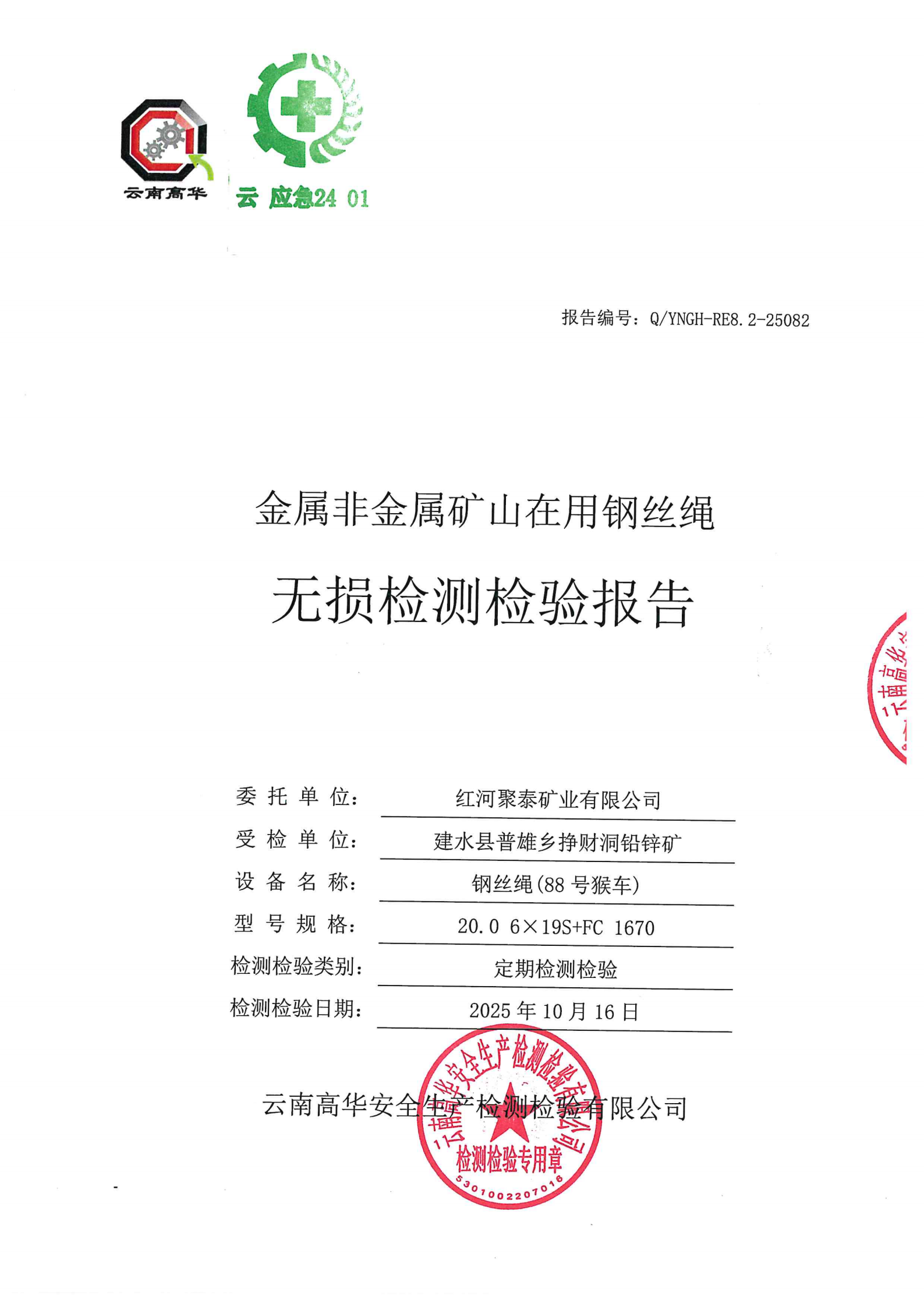 金属非金属矿山在用钢丝绳无损检测检验报告