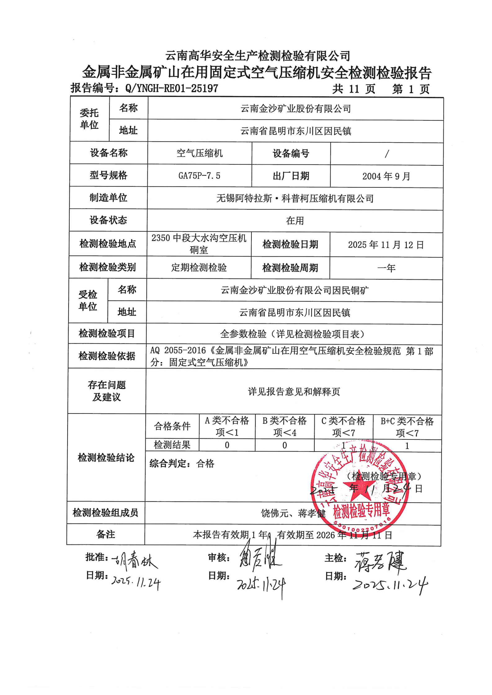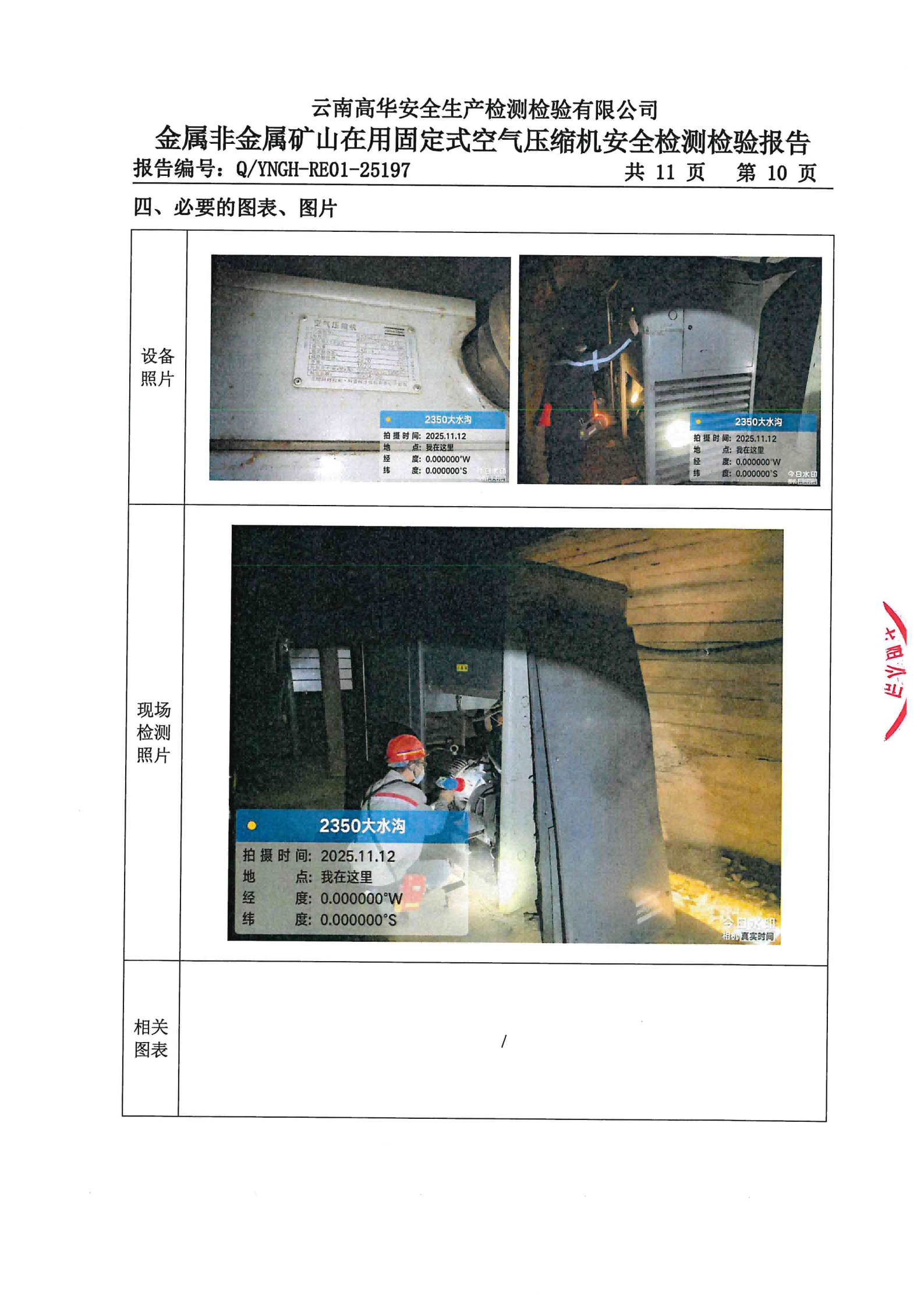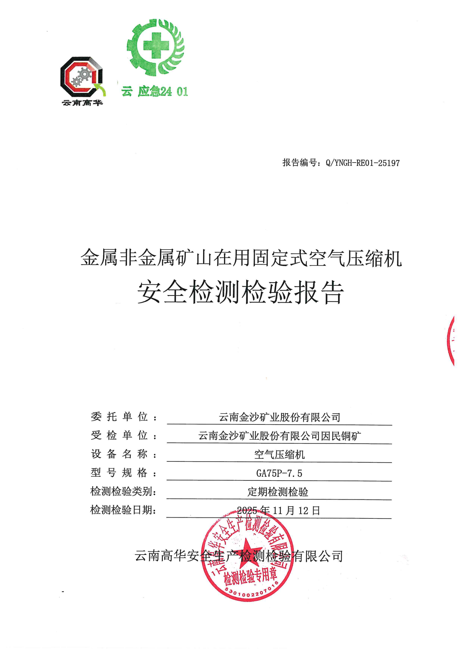 金属非金属矿山在用固定式空气压缩机安全检测检验报告