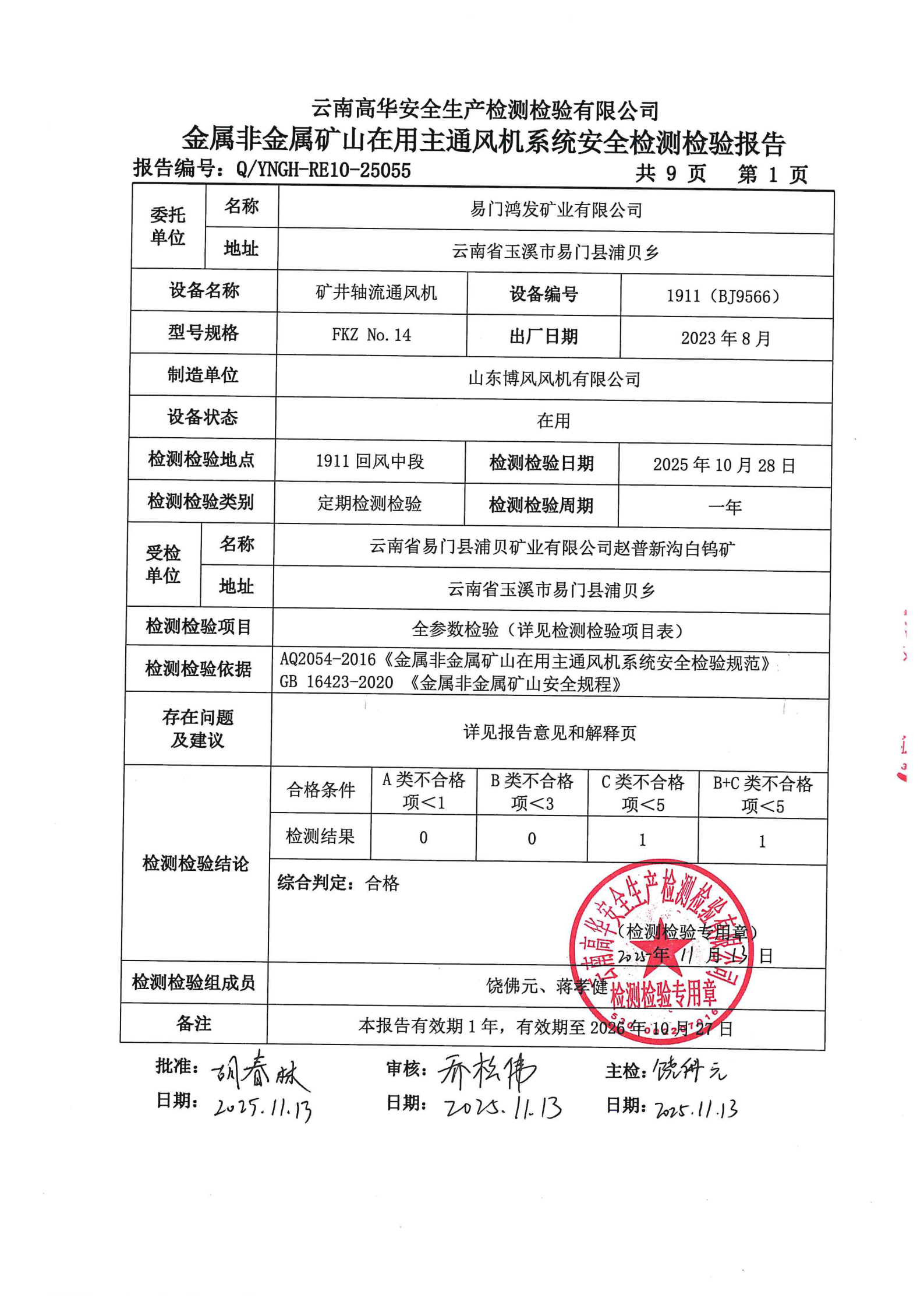 金属非金属矿山在用主通风机系统安全检测检验报告