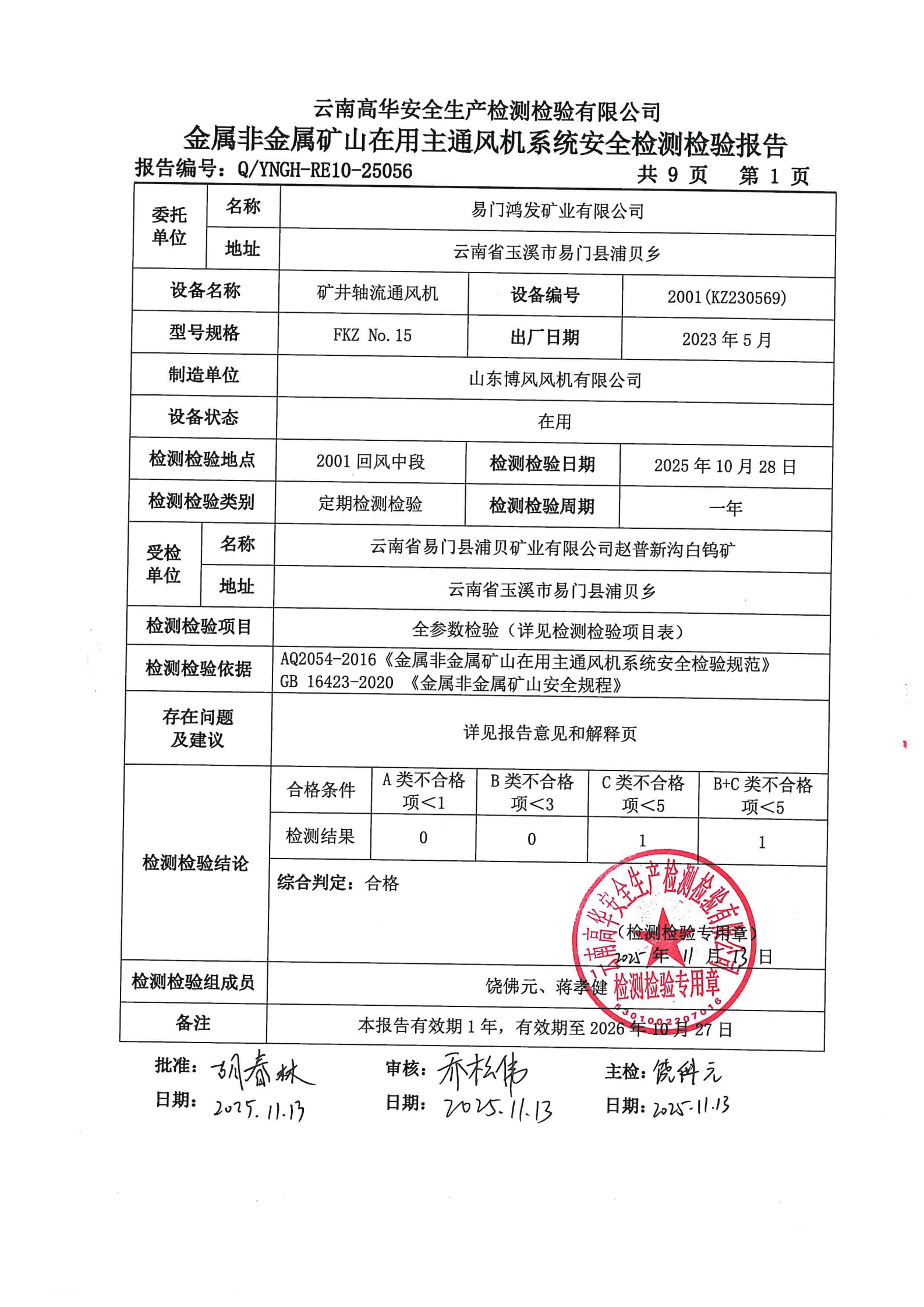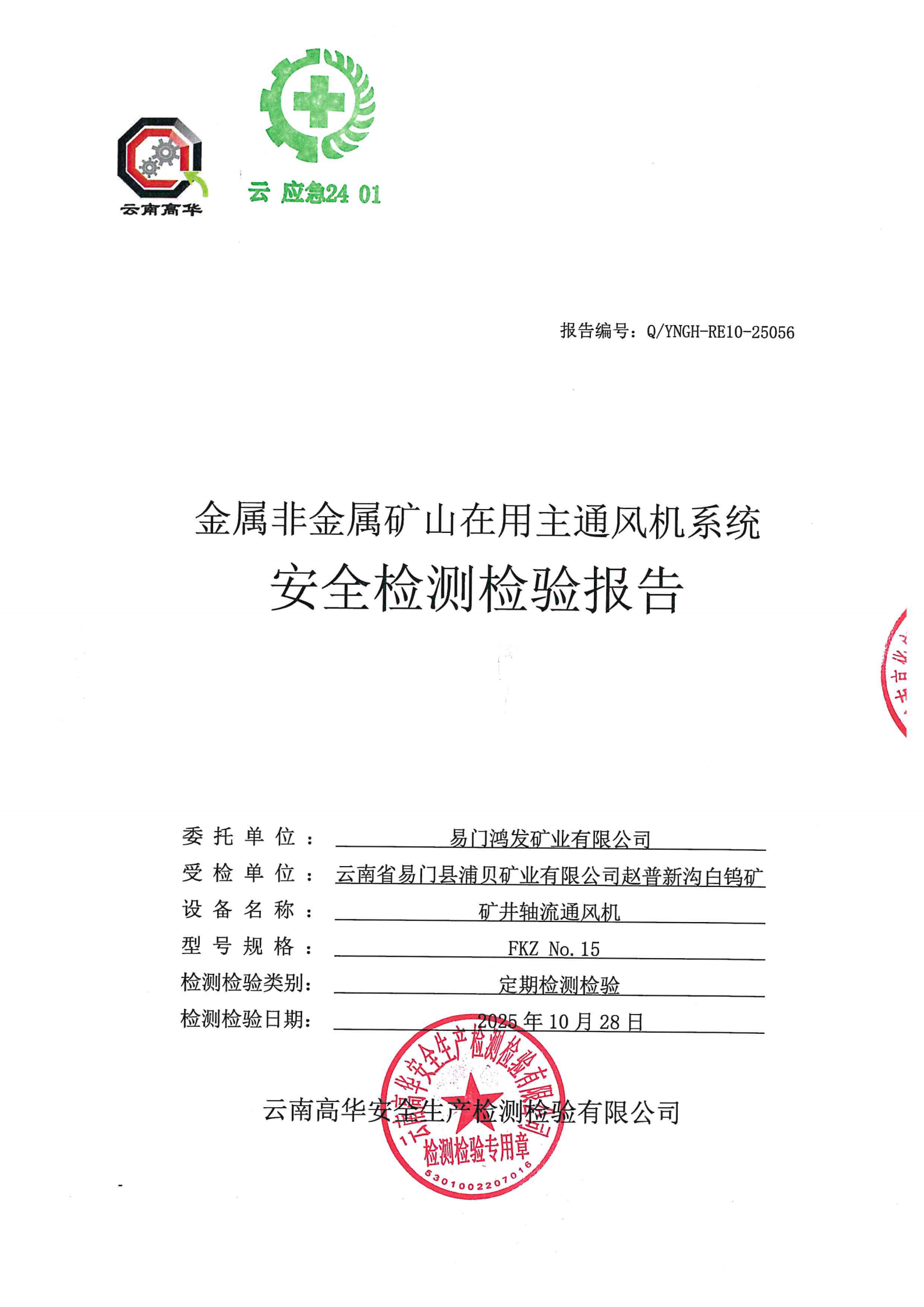 金属非金属矿山在用主通风机系统安全检测检验报告
