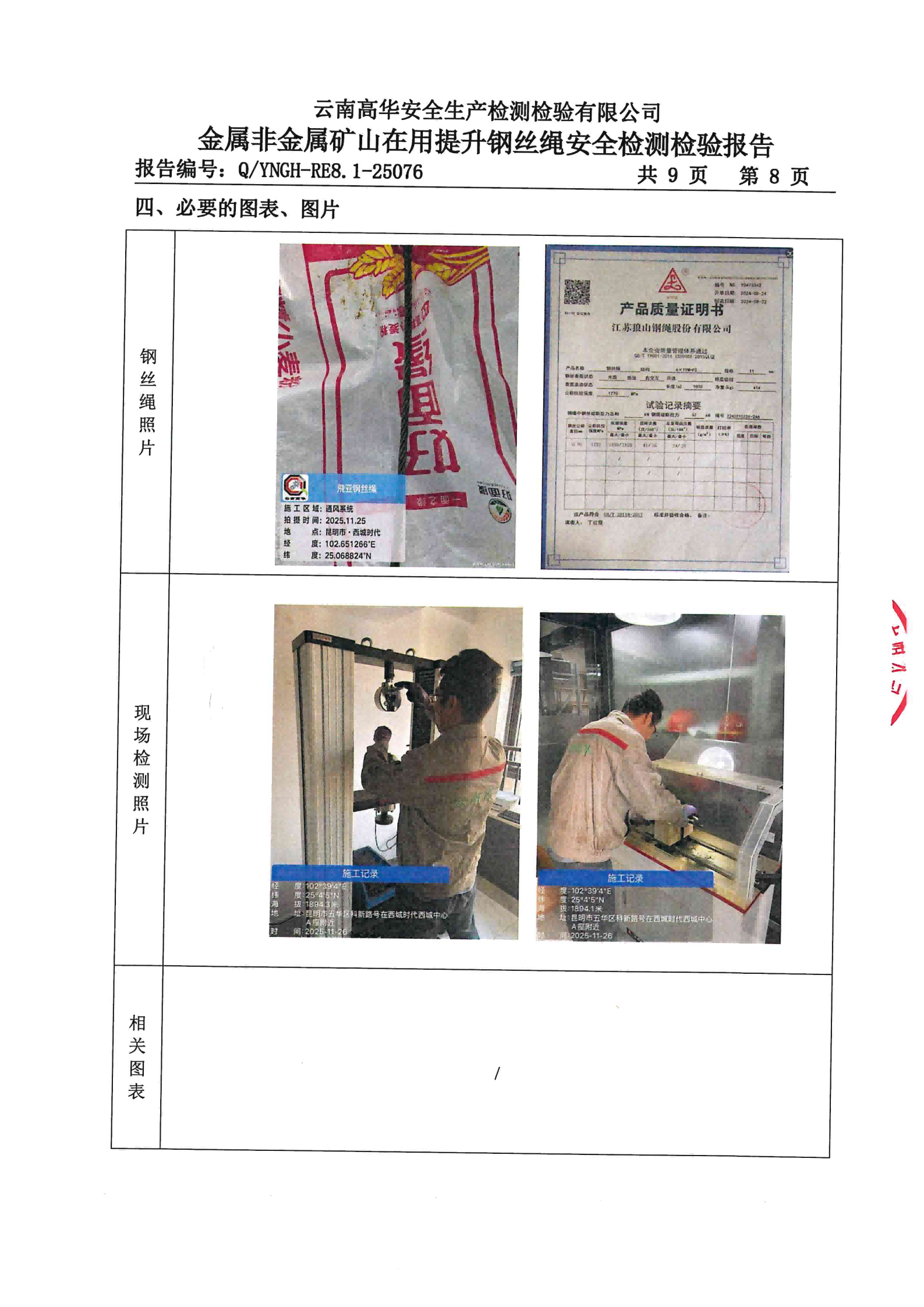 金属非金属矿山在用提升钢丝绳安全检测检验报告