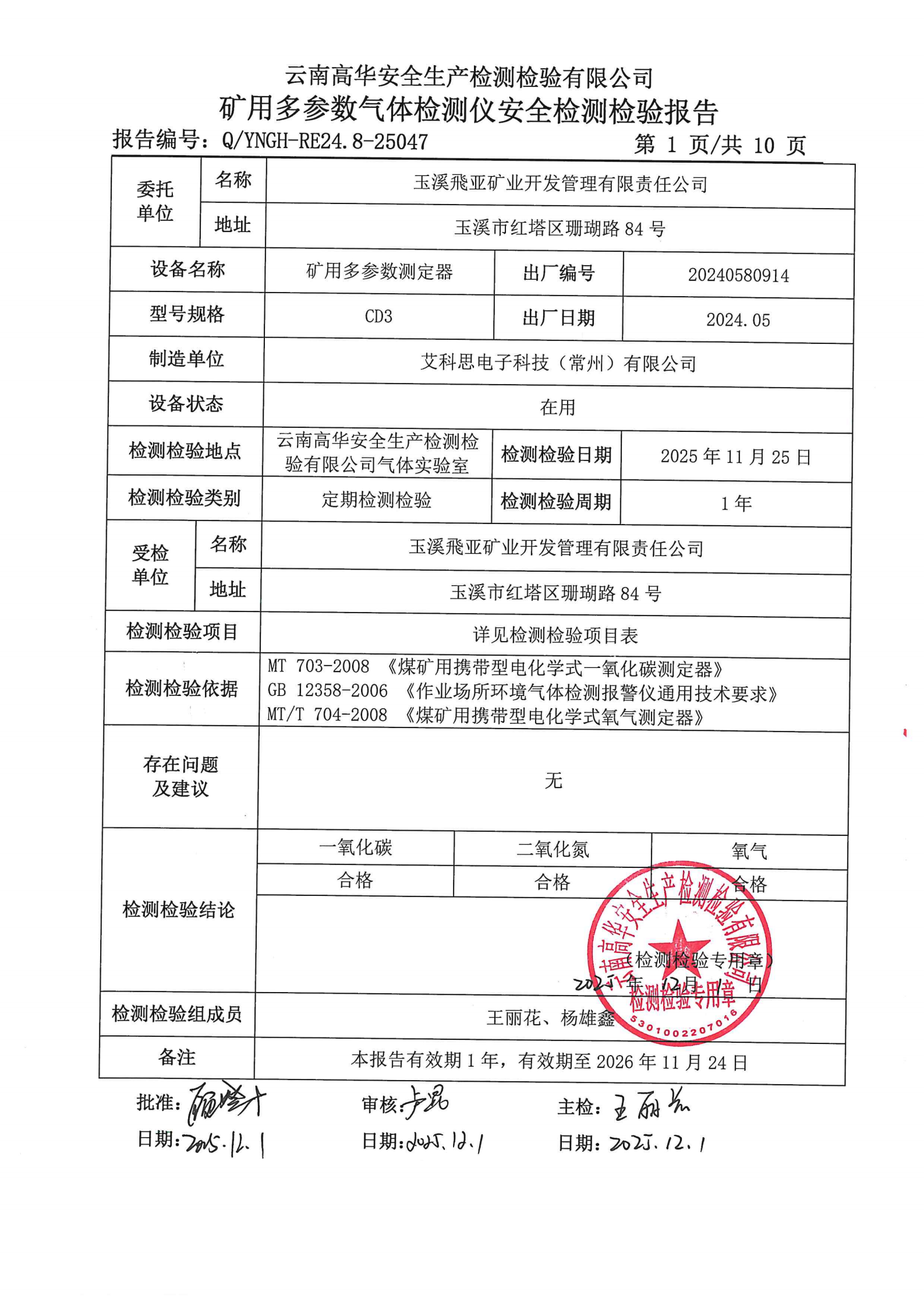金属非金属矿山在用电力绝缘安全工器具安全检测检验报告