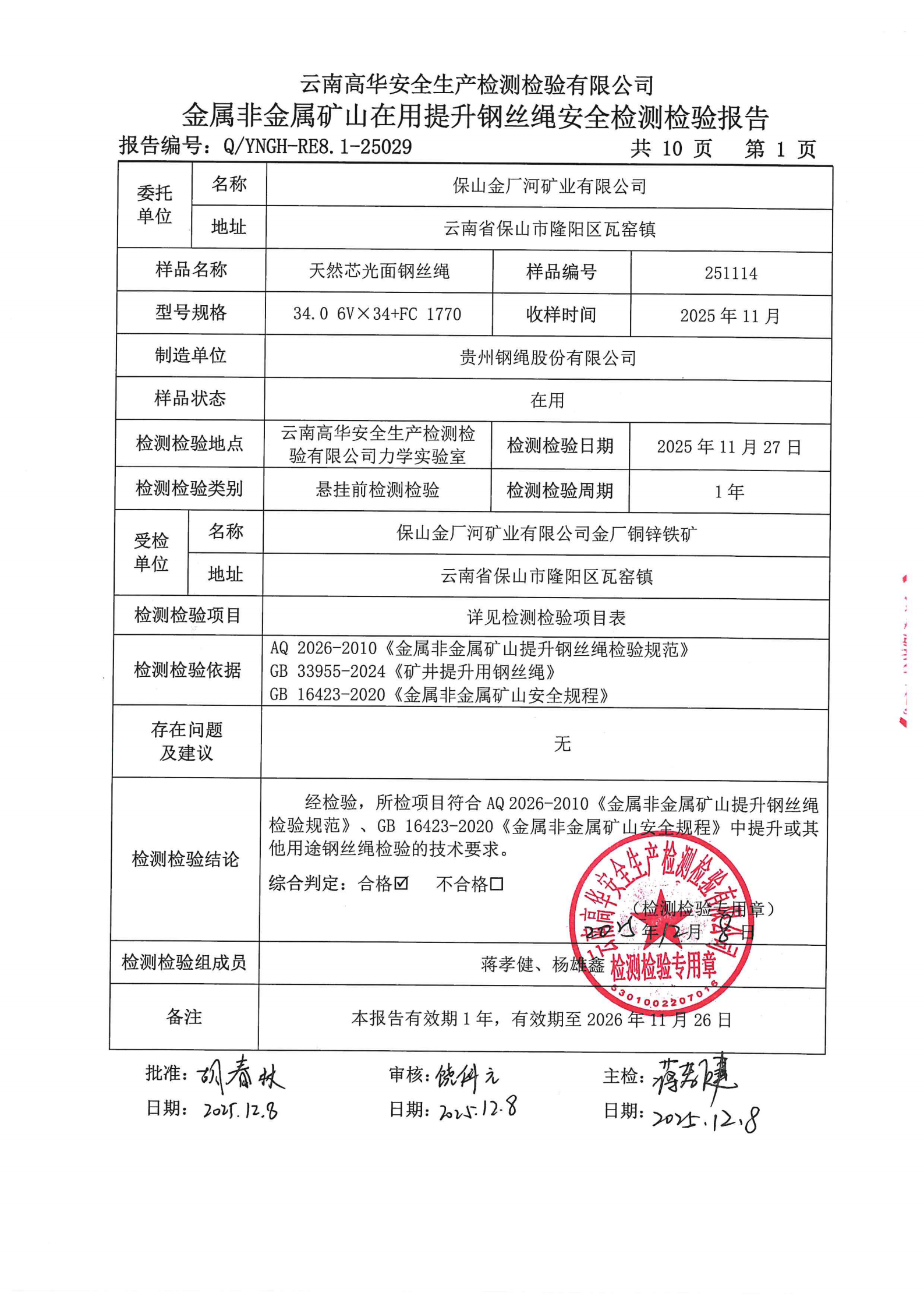 金属非金属矿山在用提升钢丝绳安全检测检验报告