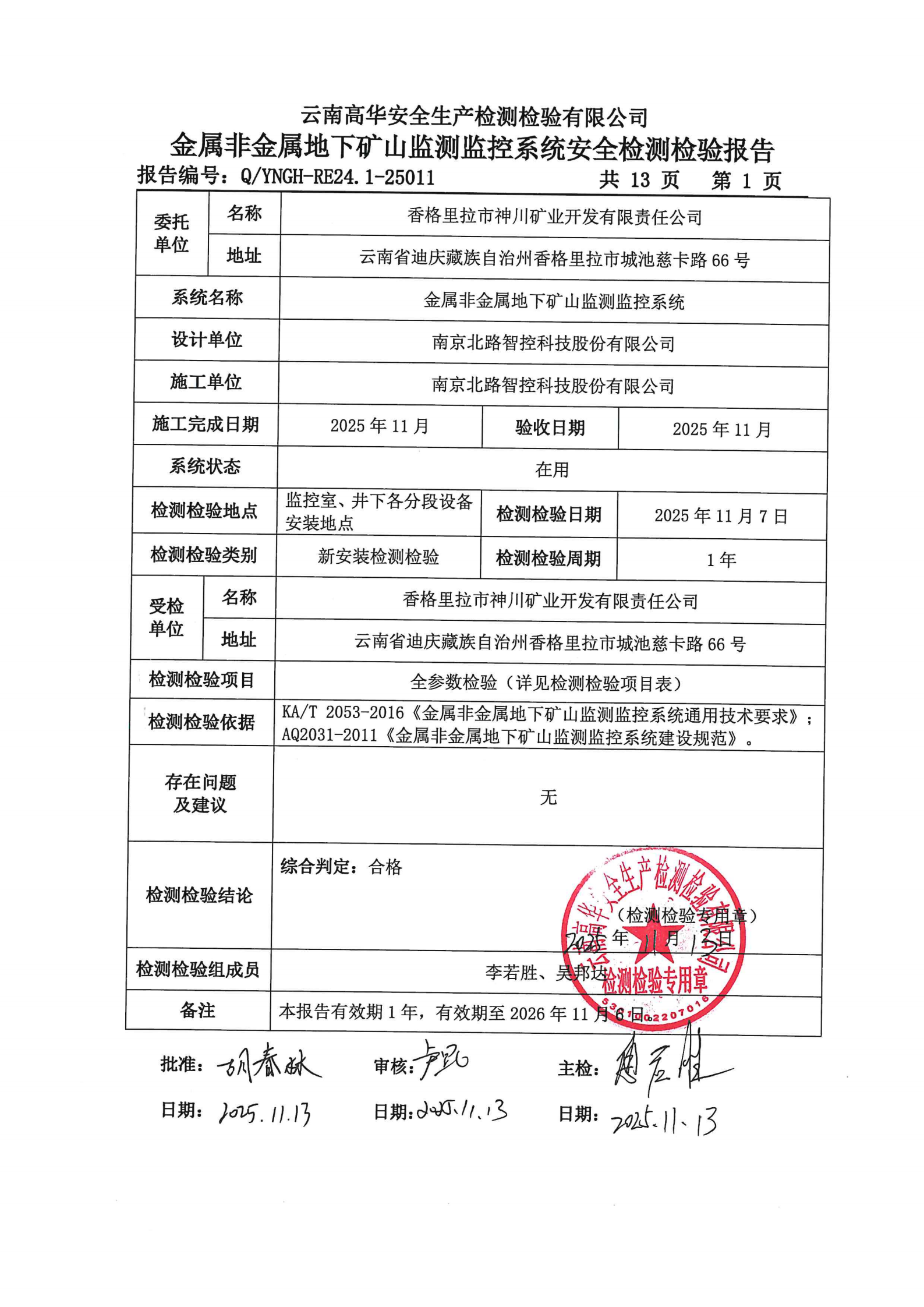 金属非金属地下矿山监测监控系统安全检测检验报告