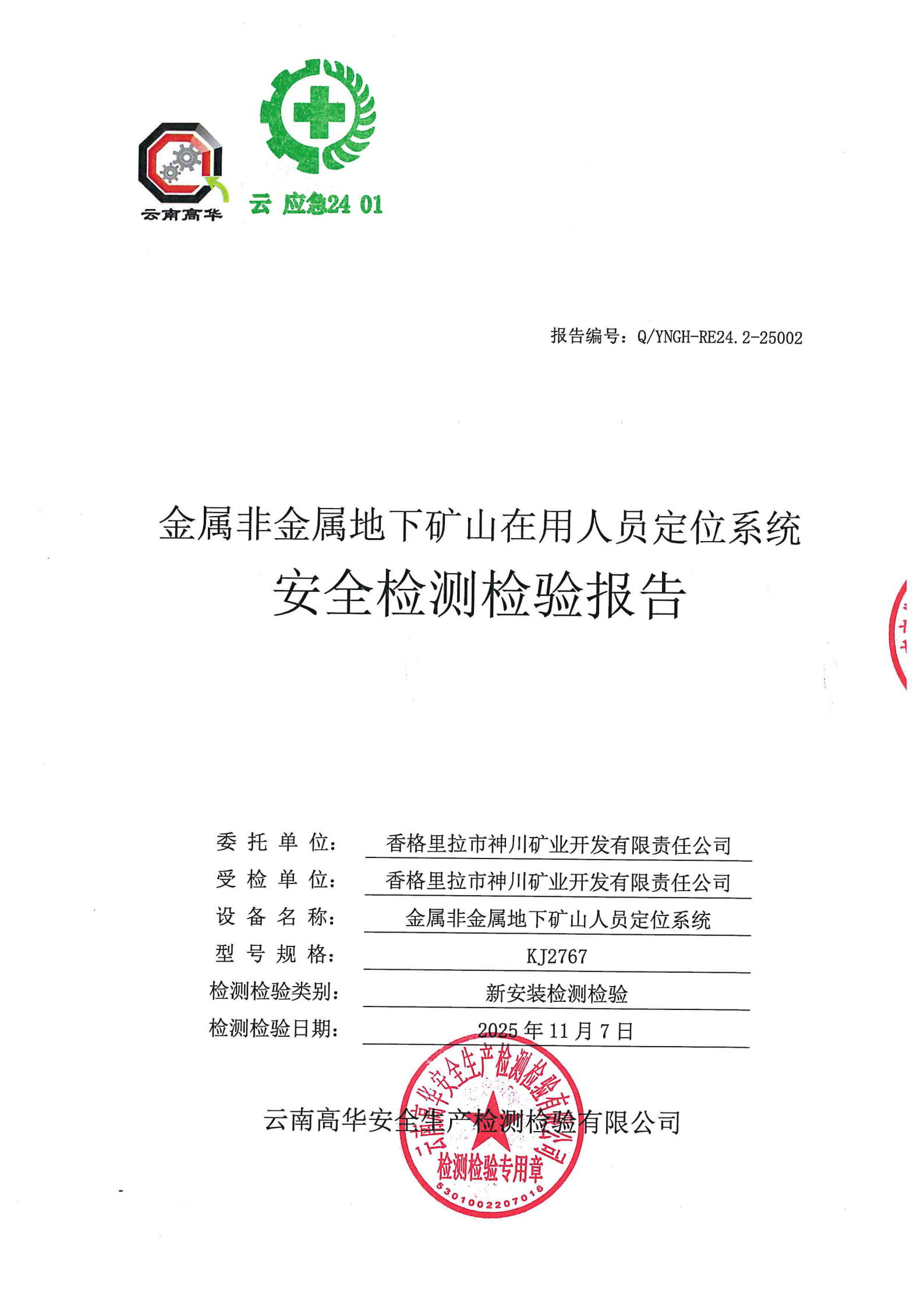 金属非金属地下矿山在用人员定位系统安全检测检验报告