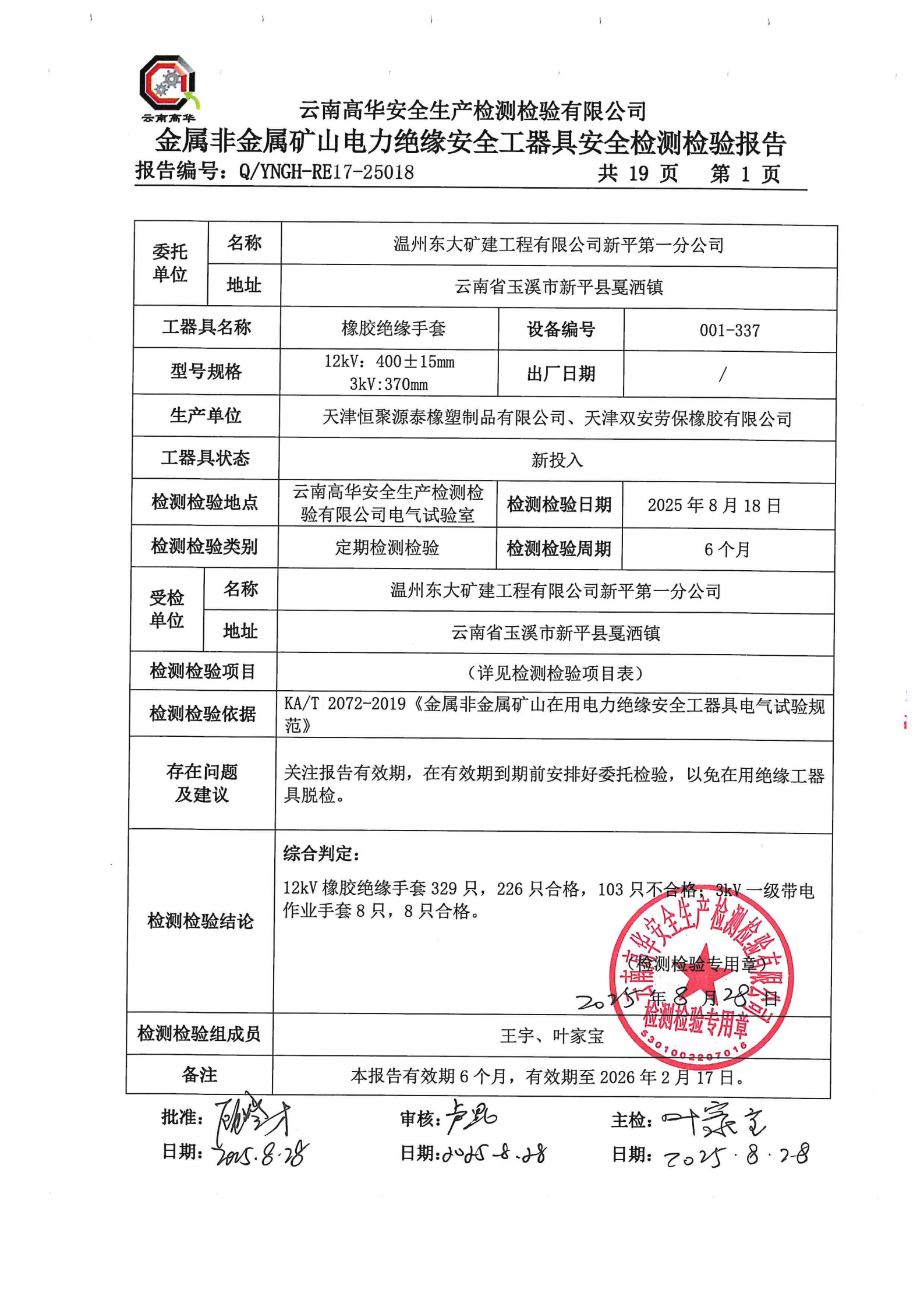 金属非金属矿山电力绝缘安全工器具安全检测检验报告