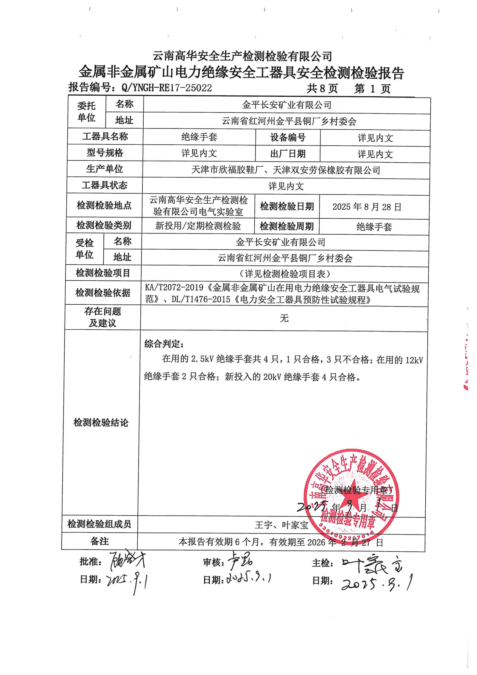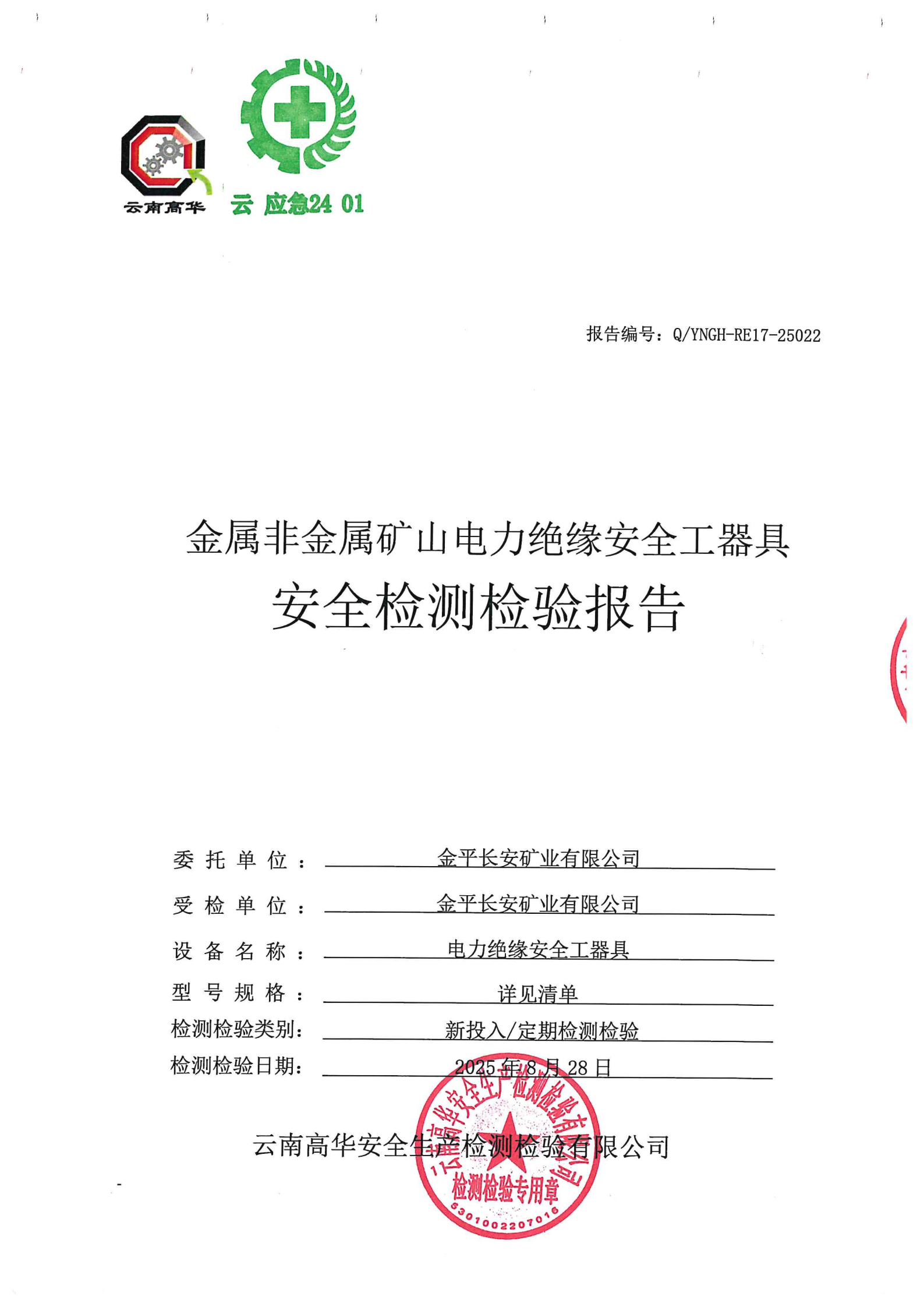 金属非金属矿山电力绝缘安全工器具安全检测检验报告