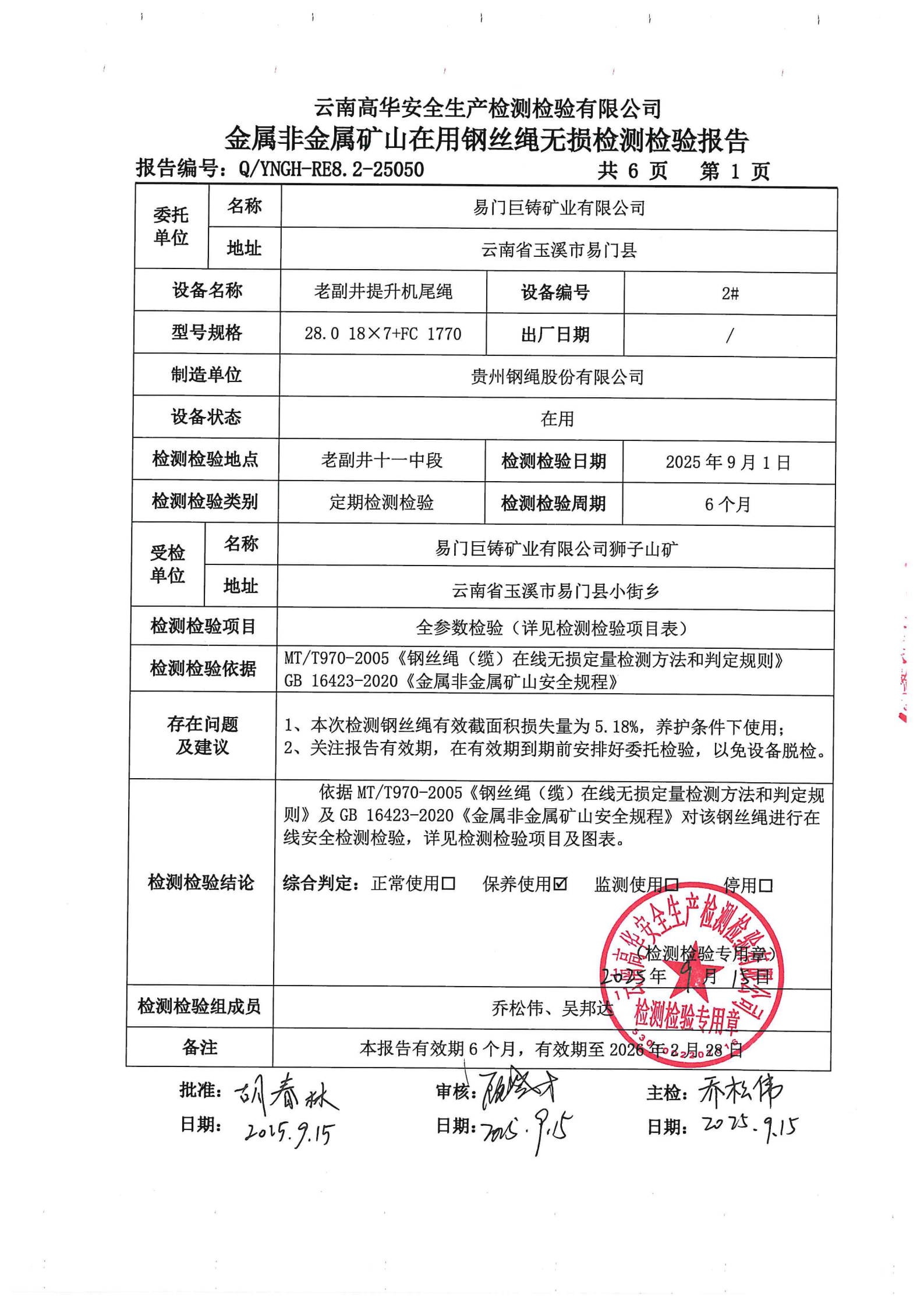 金属非金属矿山在用钢丝绳无损检测检验报告
