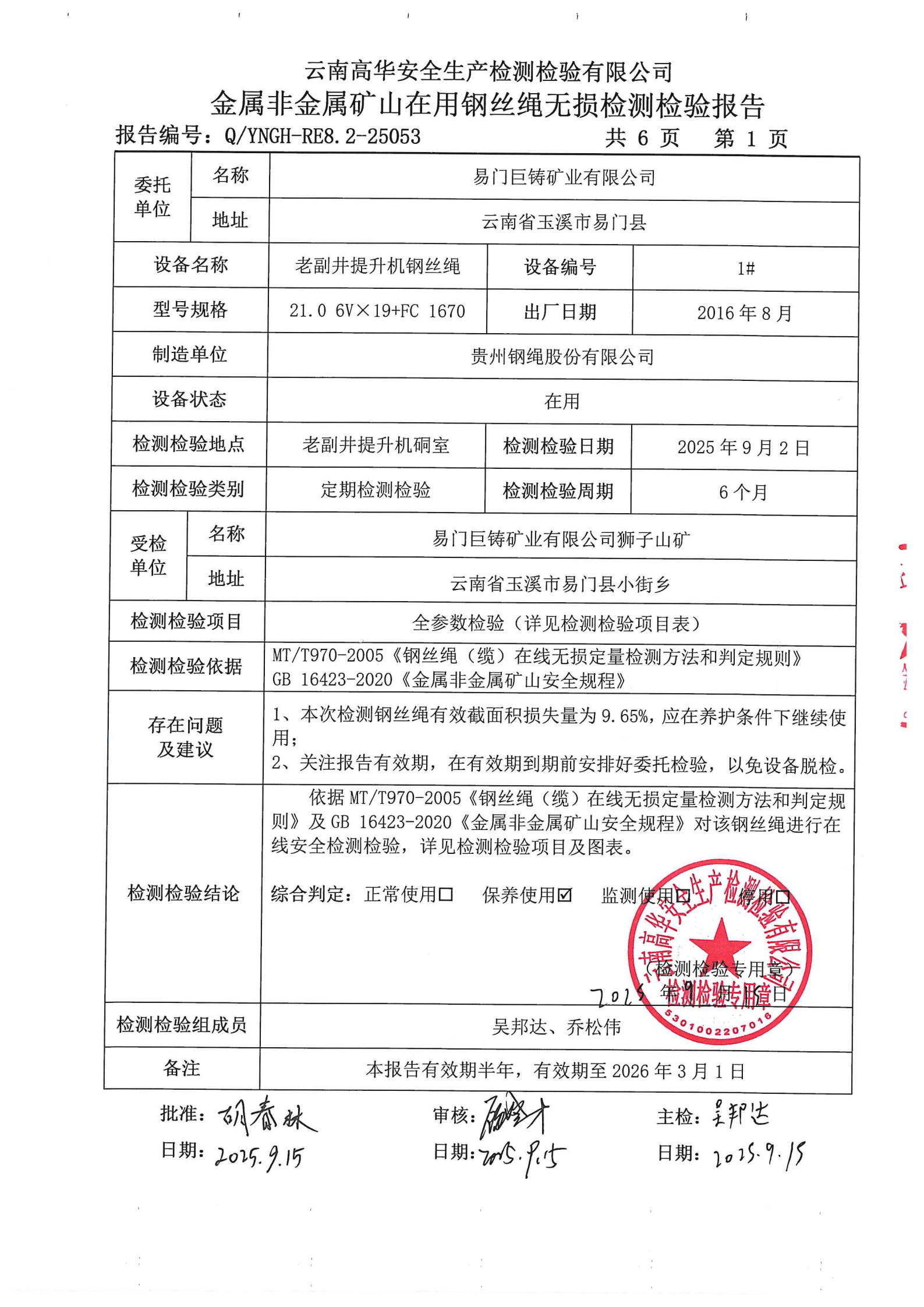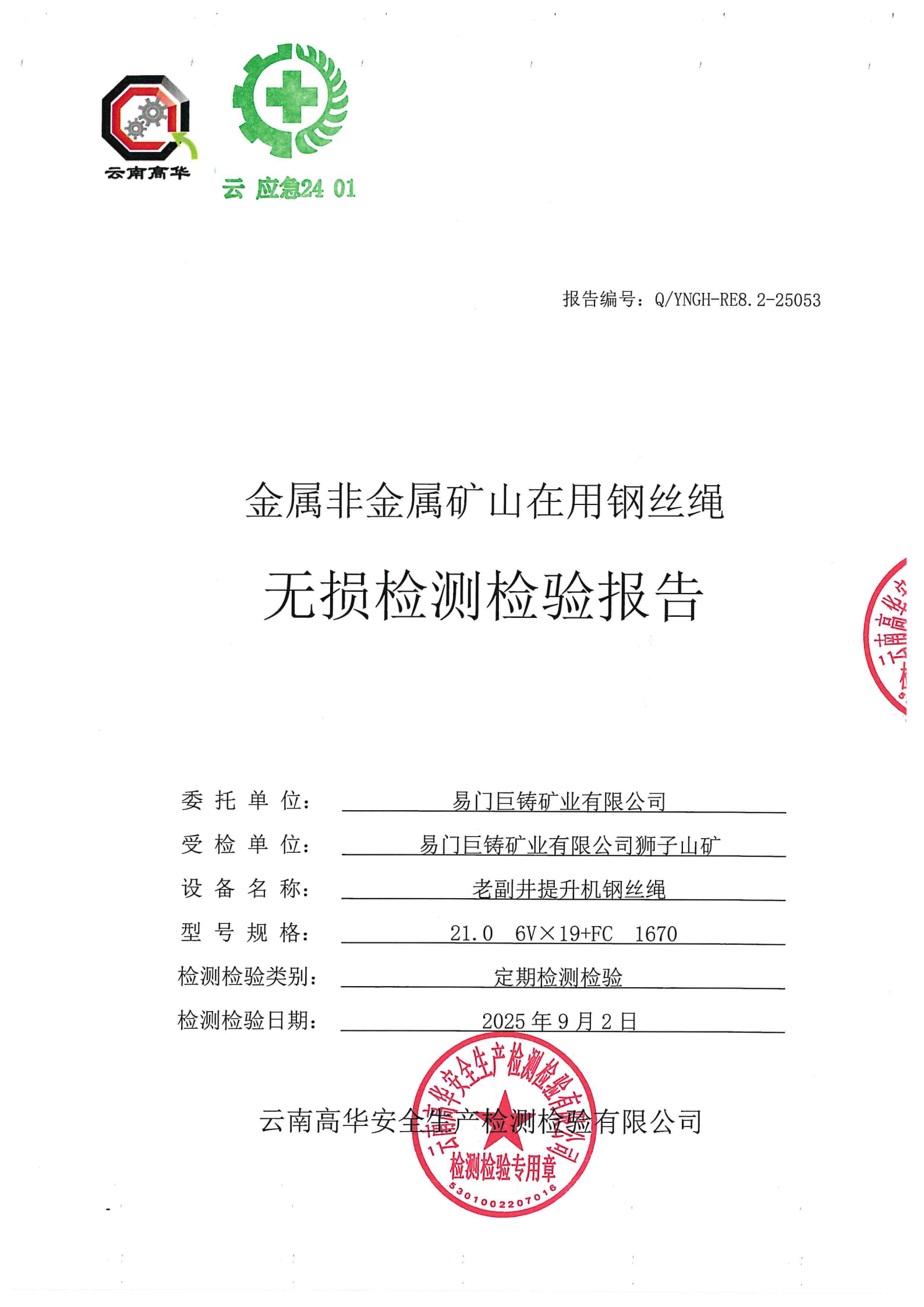 金属非金属矿山在用钢丝绳无损检测检验报告