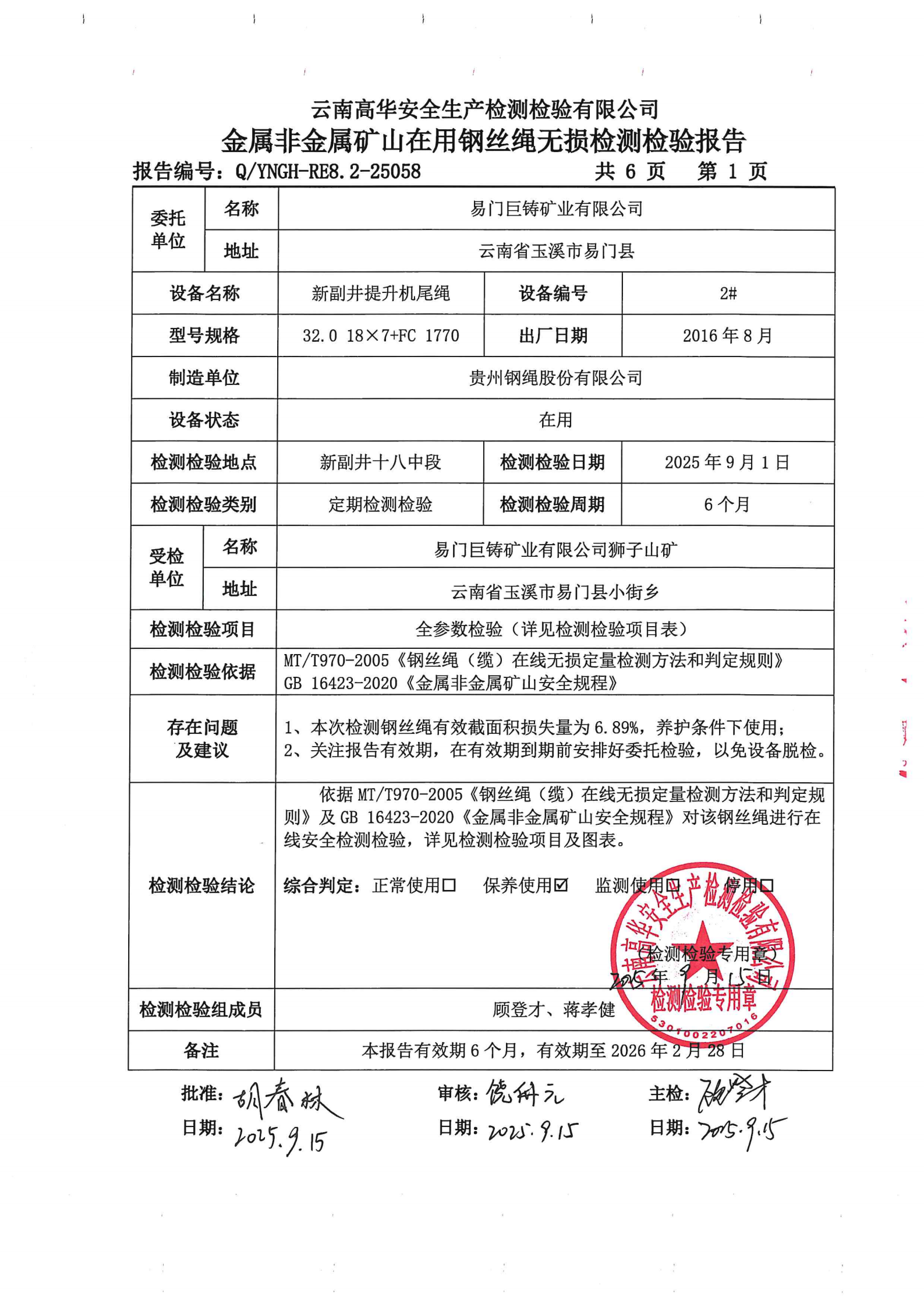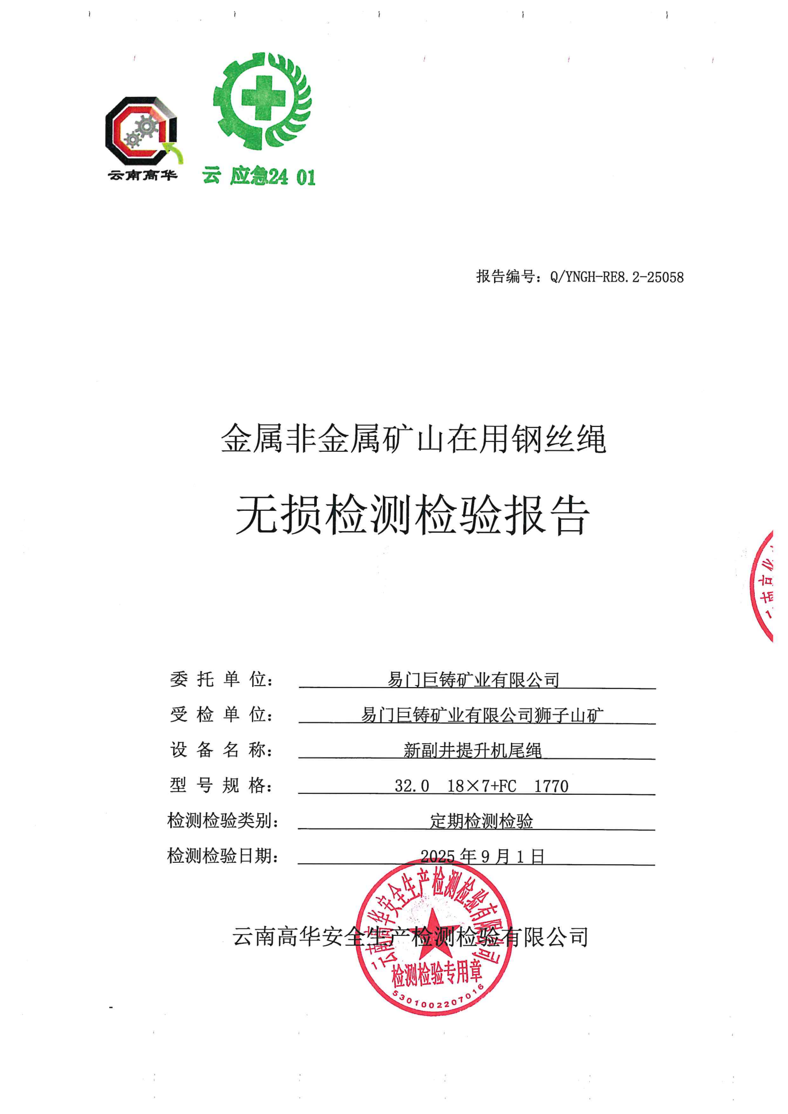 金属非金属矿山在用提升钢丝绳安全检测检验报告