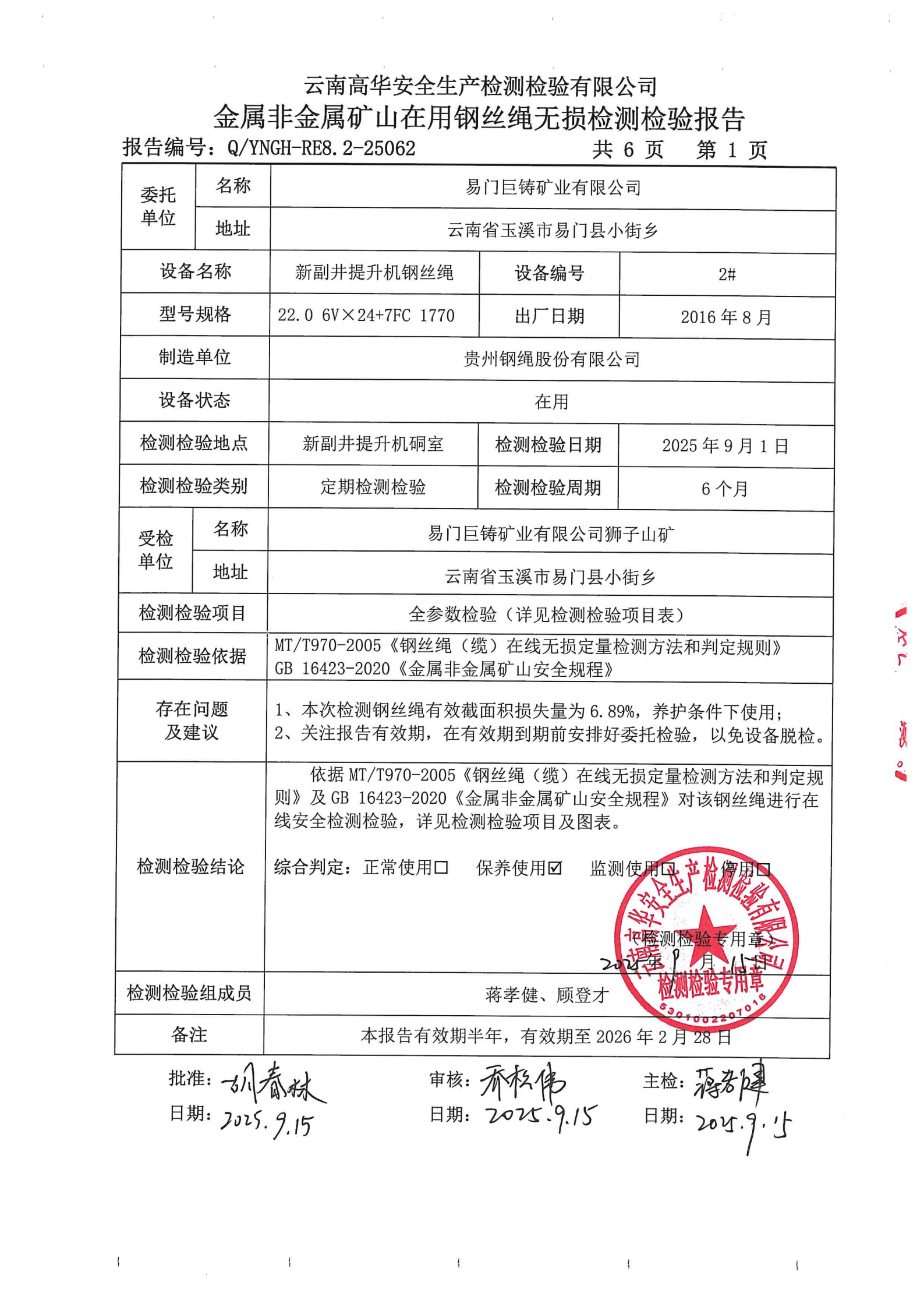 金属非金属矿山在用钢丝绳无损检测检验报告