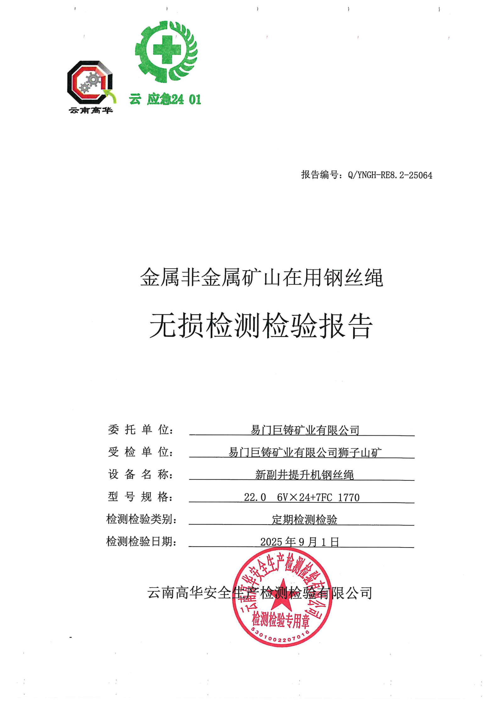 金属非金属矿山在用钢丝绳无损检测检验报告