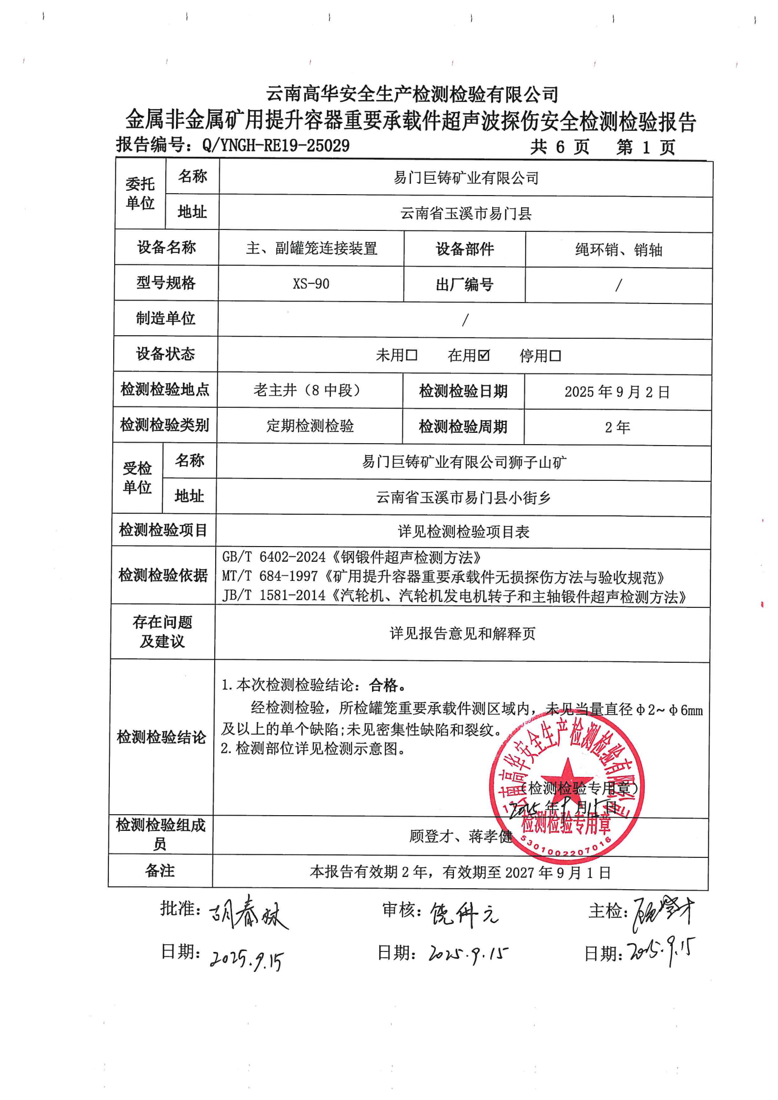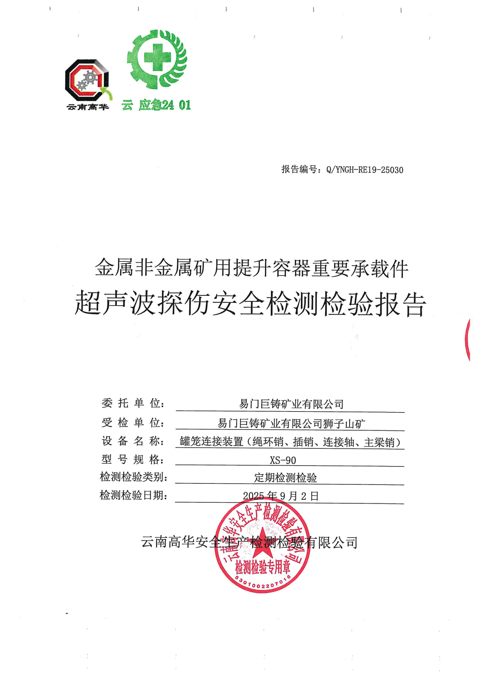 金属非金属矿用提升容器重要承载件超声波探伤安全检测检验报告