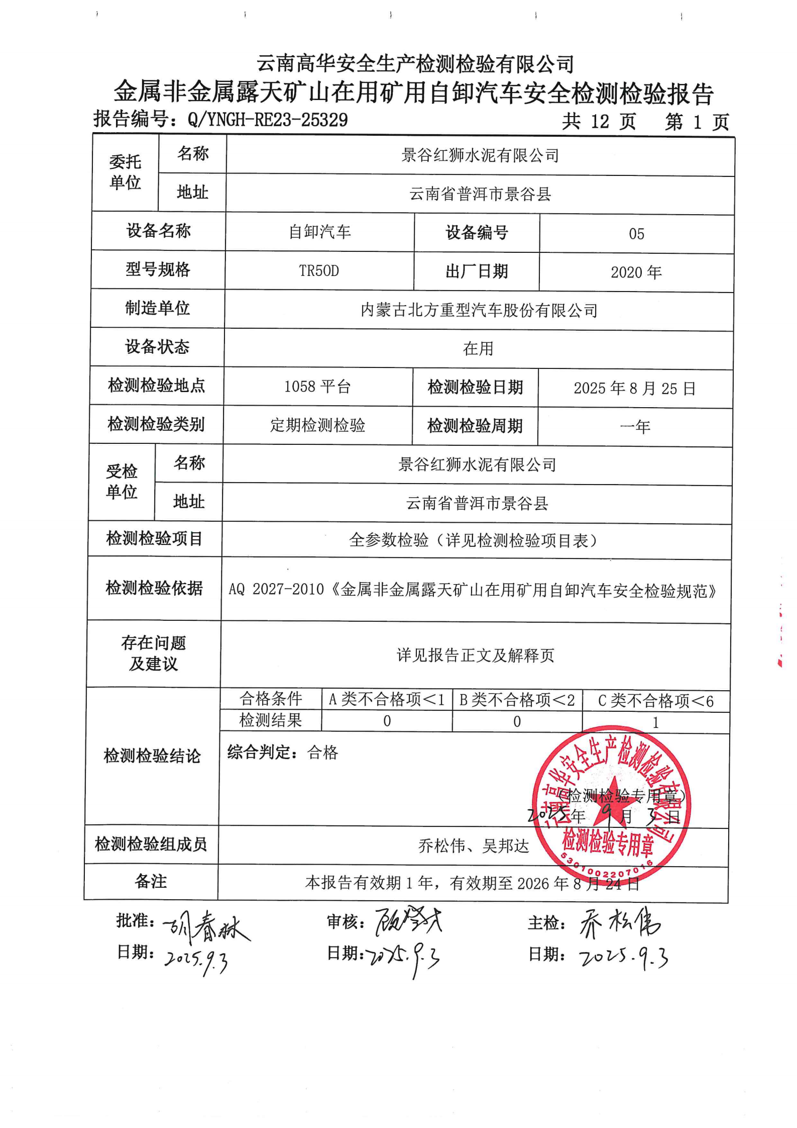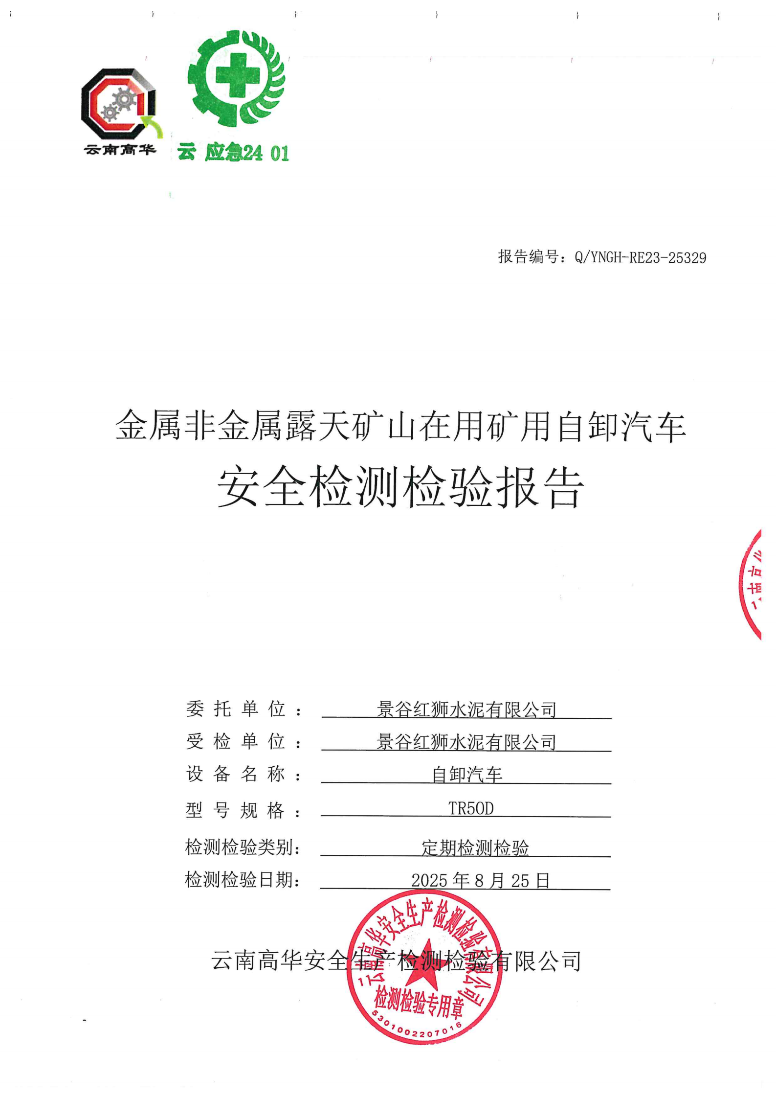 金属非金属露天矿山在用矿用自卸汽车安全检测检验报告