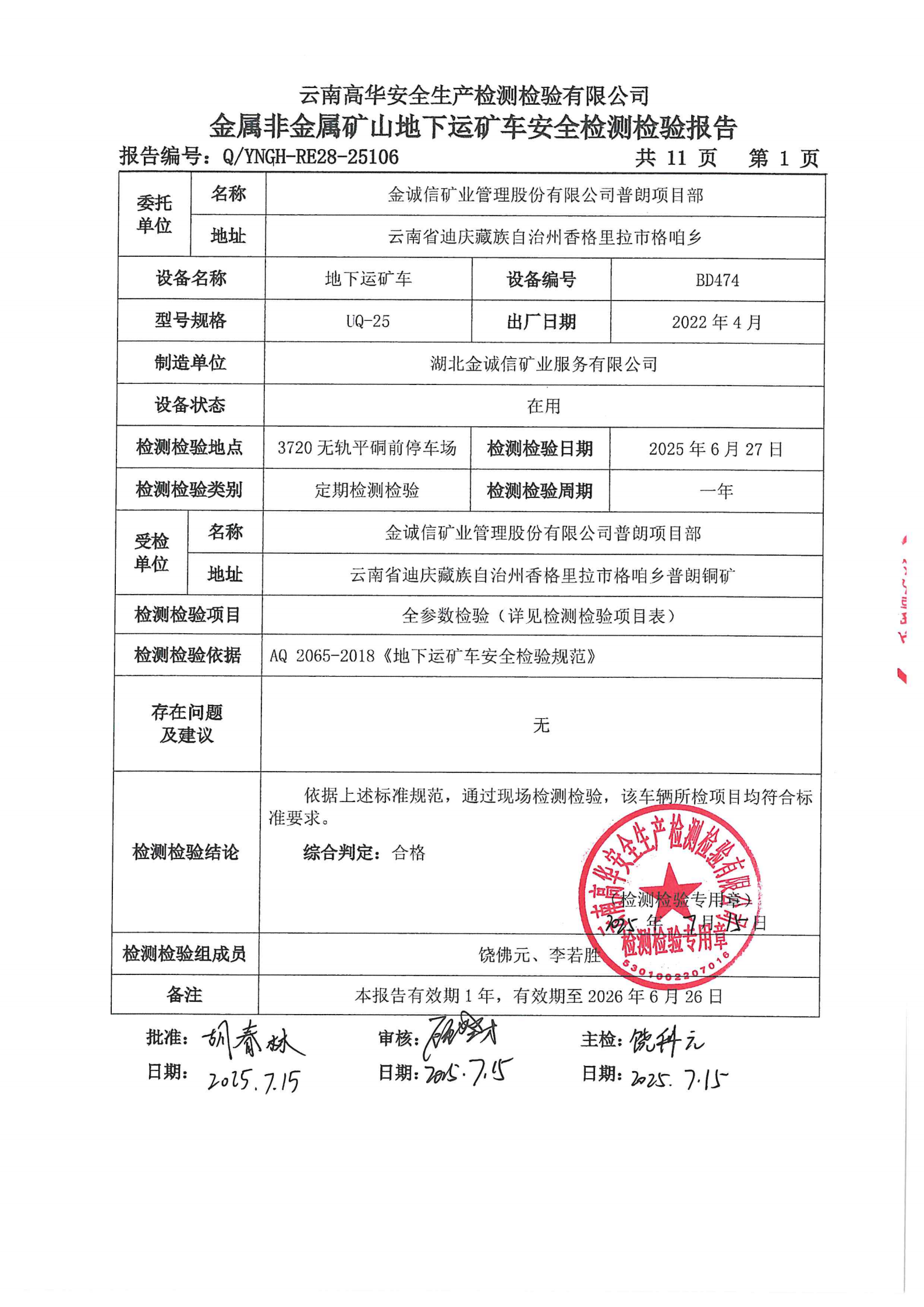 金属非金属矿山在用提升钢丝绳安全检测检验报告