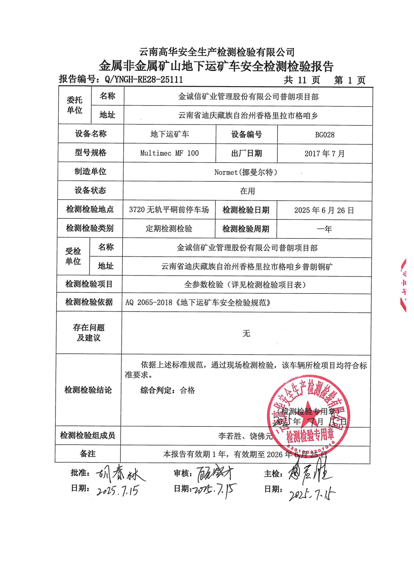 金属非金属矿山在用提升钢丝绳安全检测检验报告