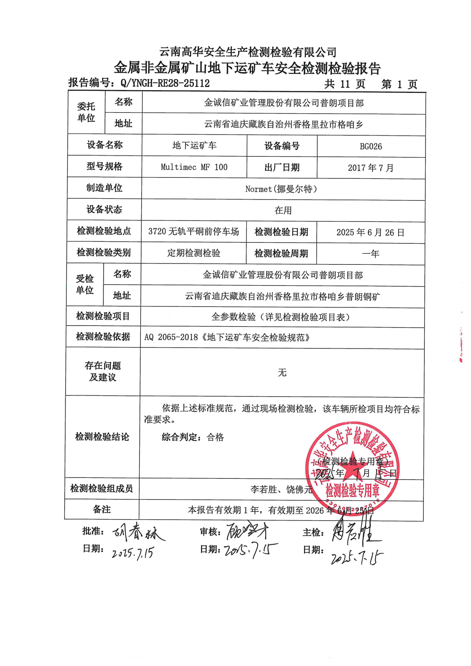金属非金属矿山在用提升钢丝绳安全检测检验报告