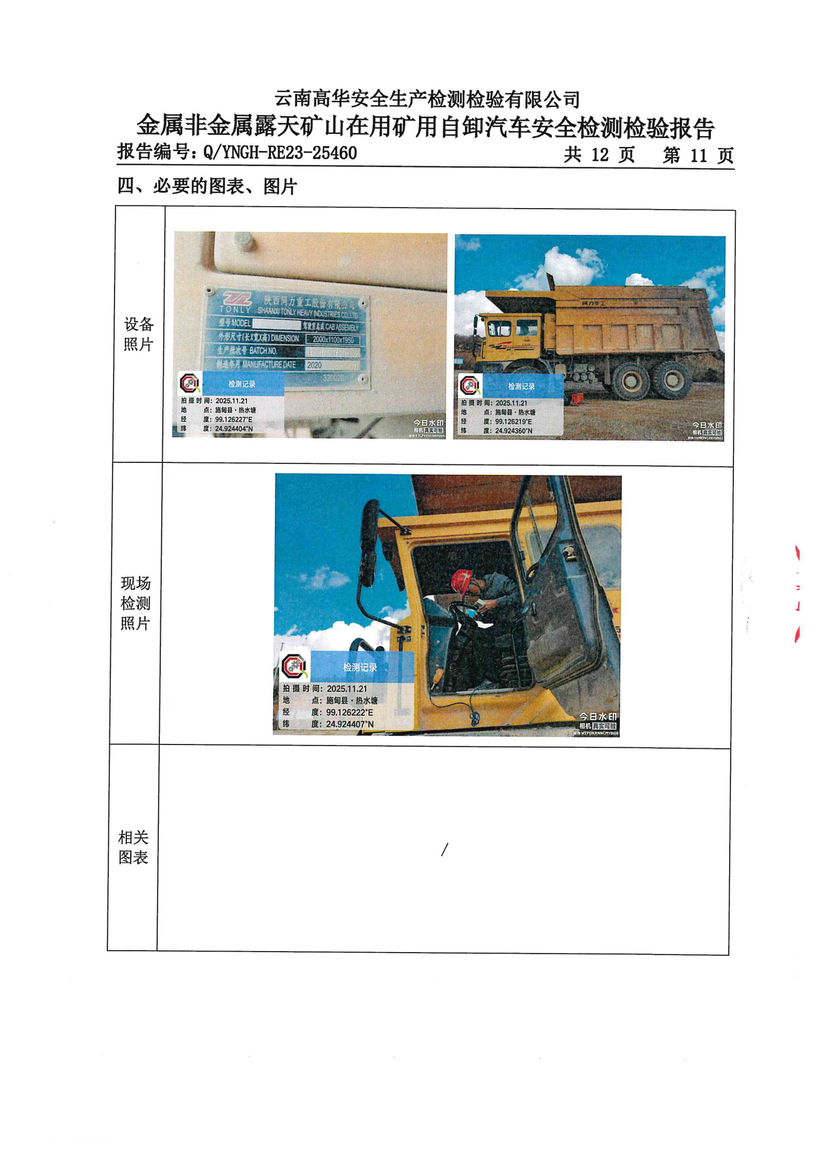 金属非金属露天矿山在用矿用自卸汽车安全检测检验报告