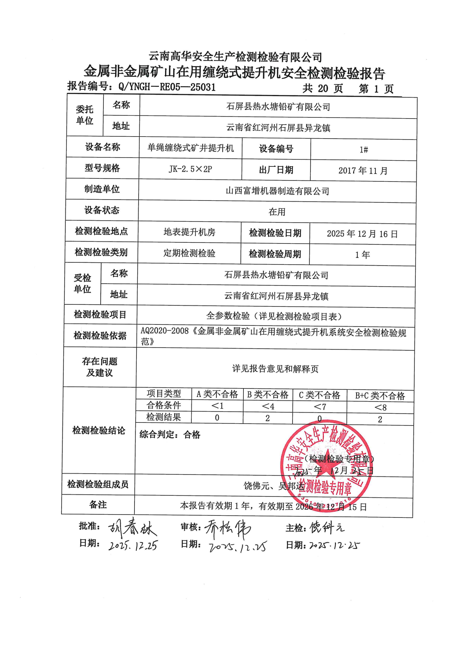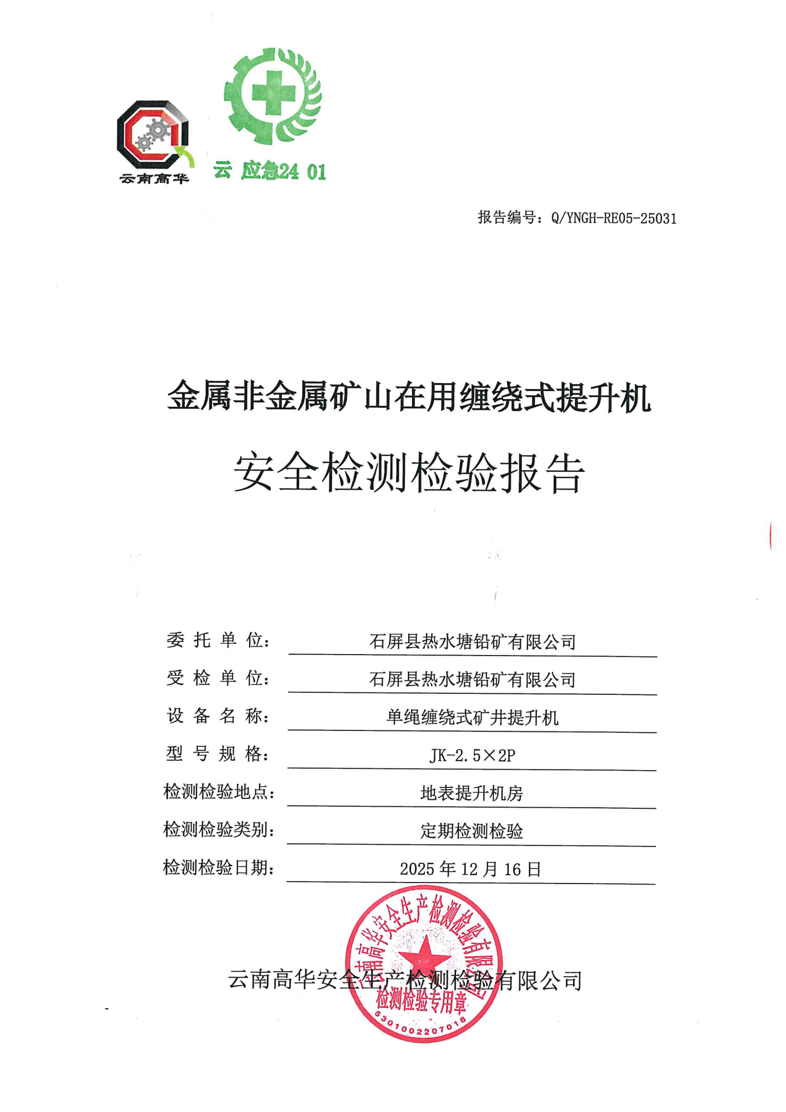 金属非金属矿山在用缠绕式提升机安全检测检验报告
