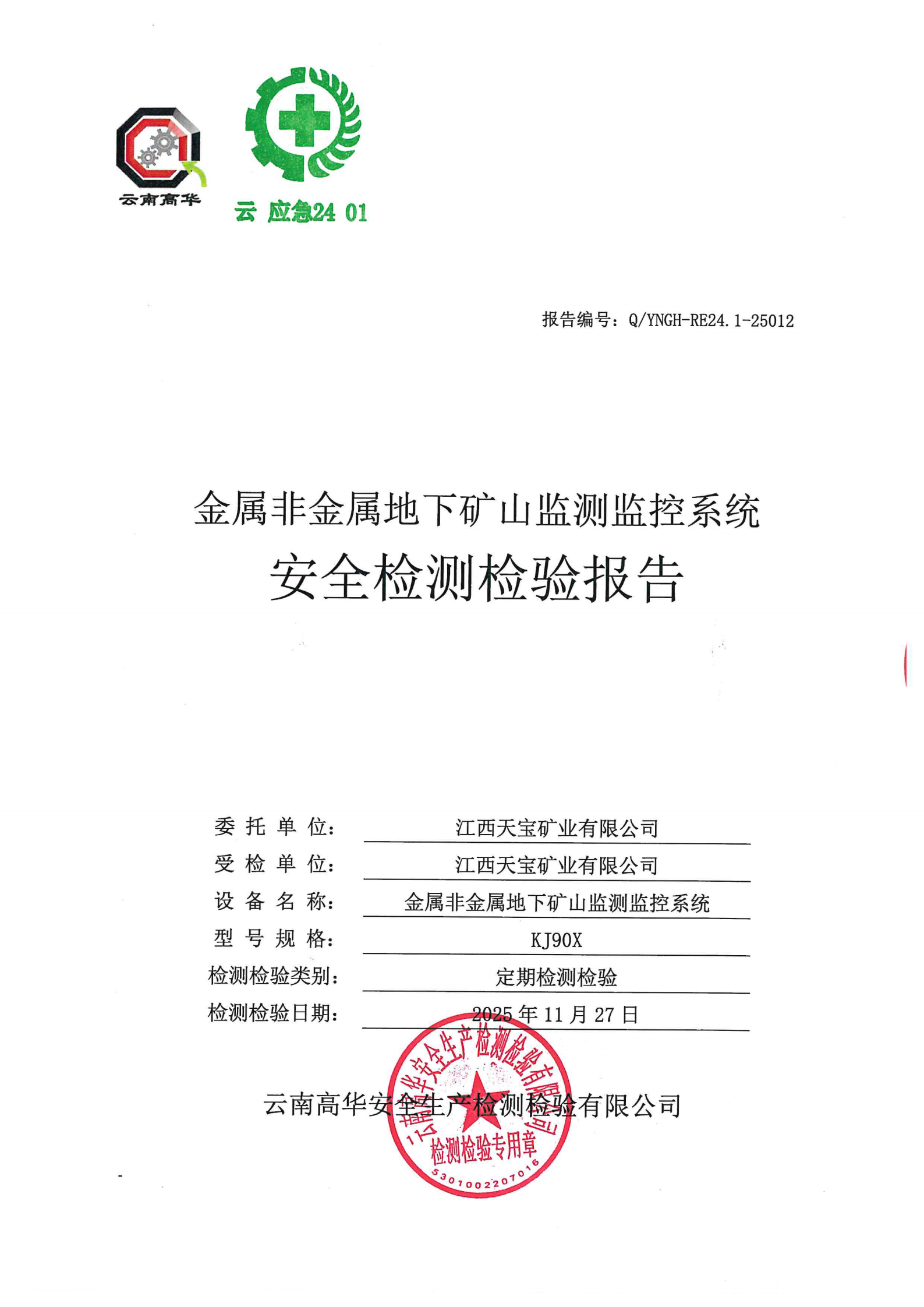 金属非金属地下矿山监测监控系统安全检测检验报告