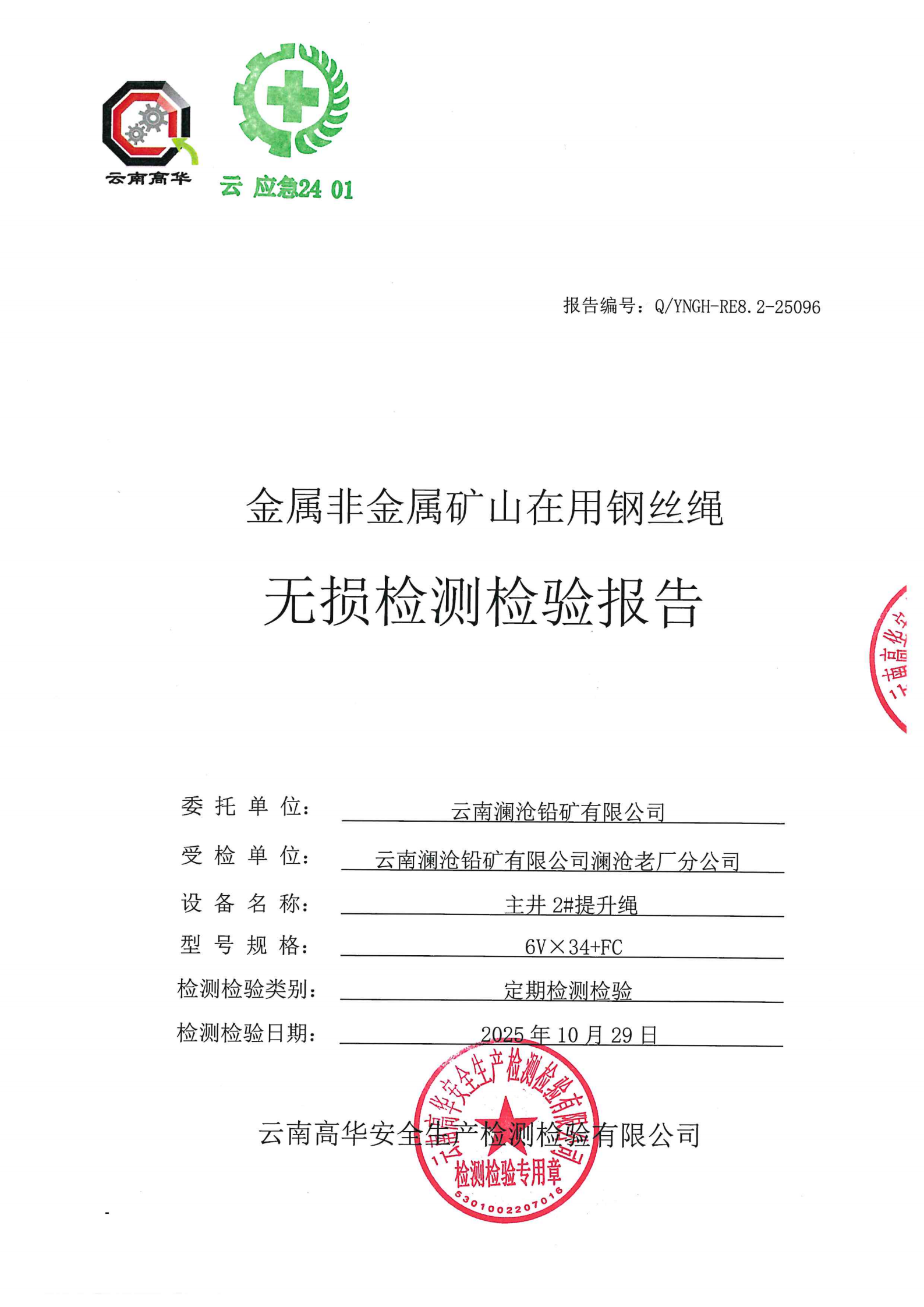 金属非金属矿山在用钢丝绳无损检测检验报告