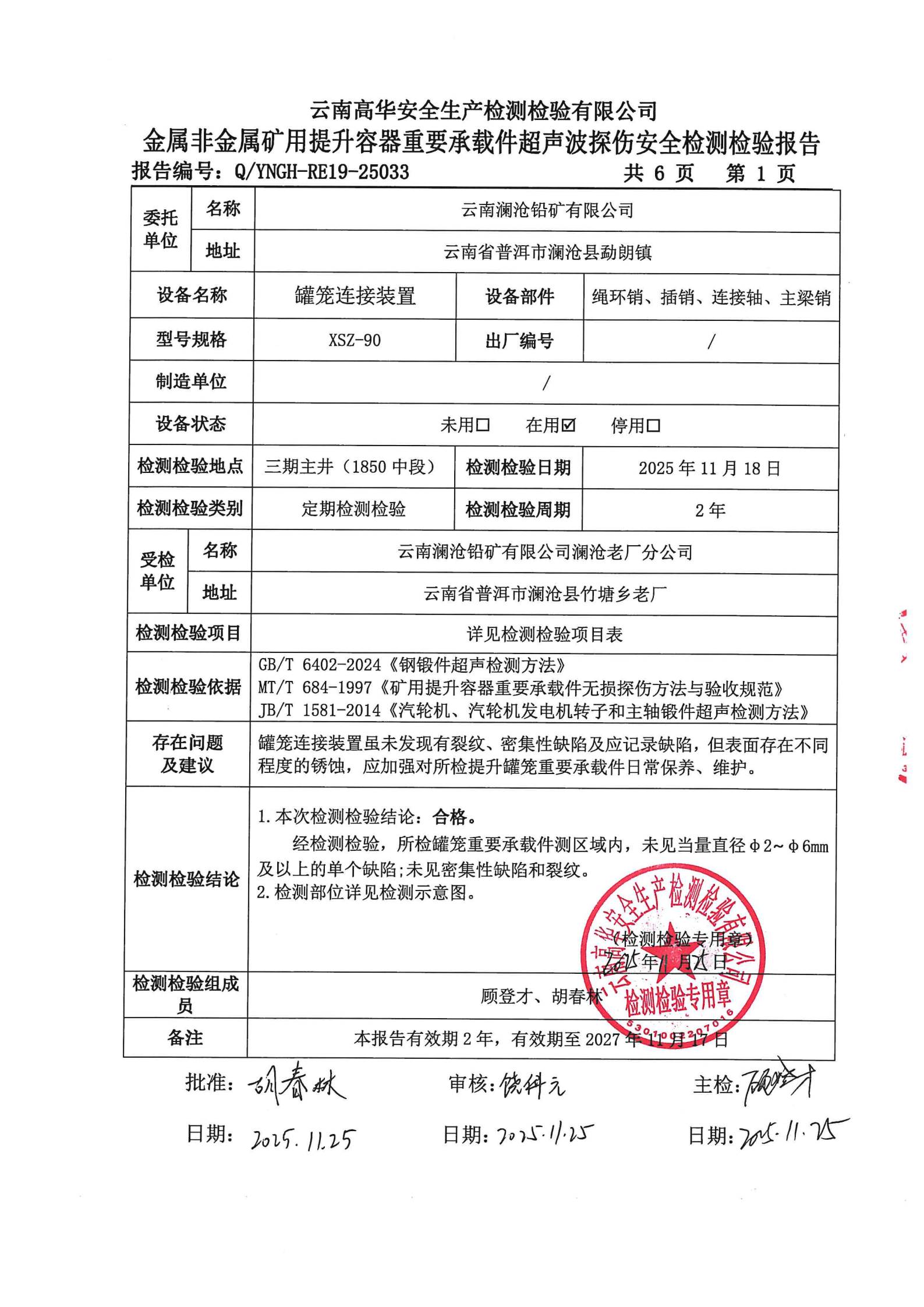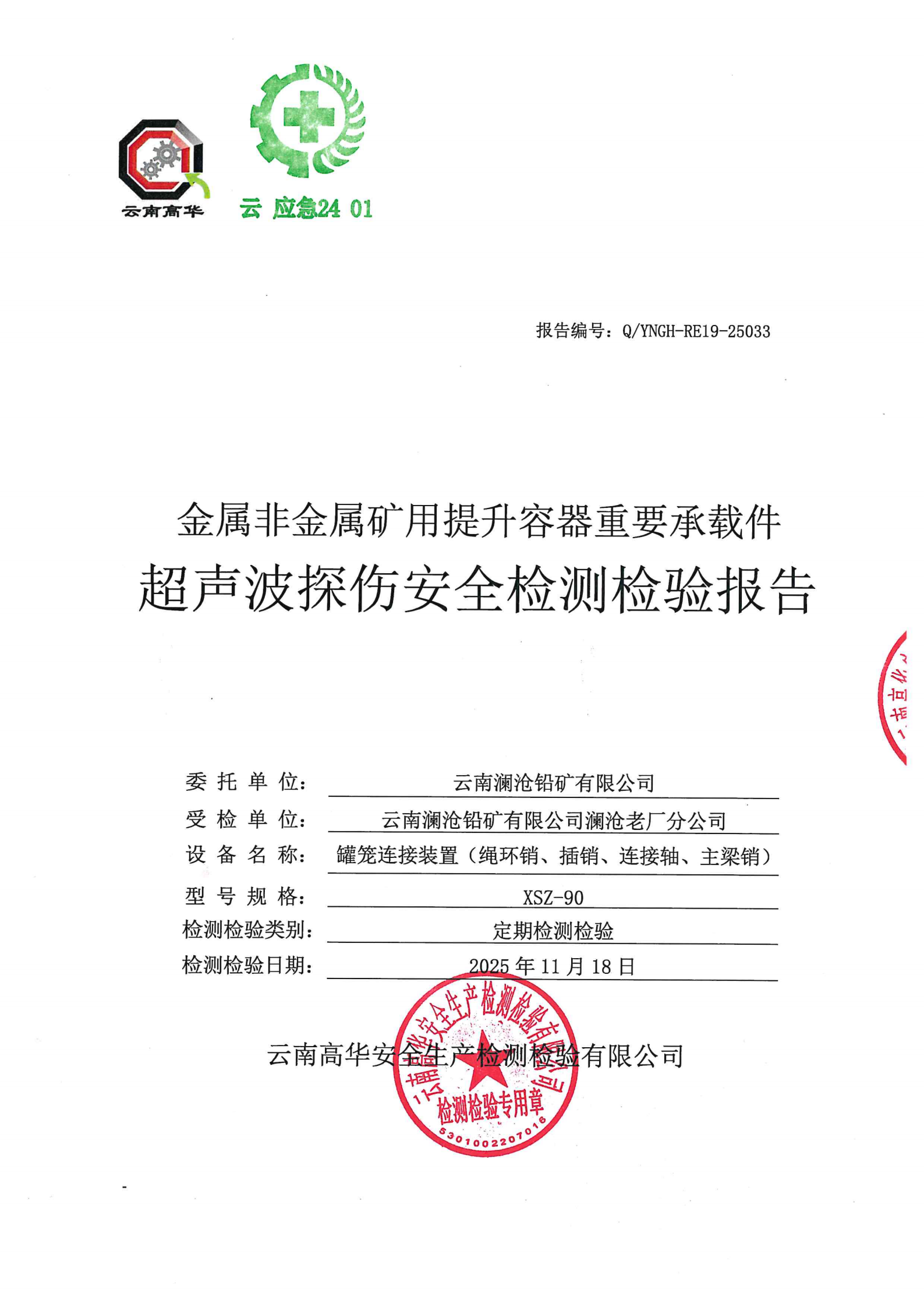 金属非金属矿用提升容器重要承载件超声波探伤安全检测检验报告