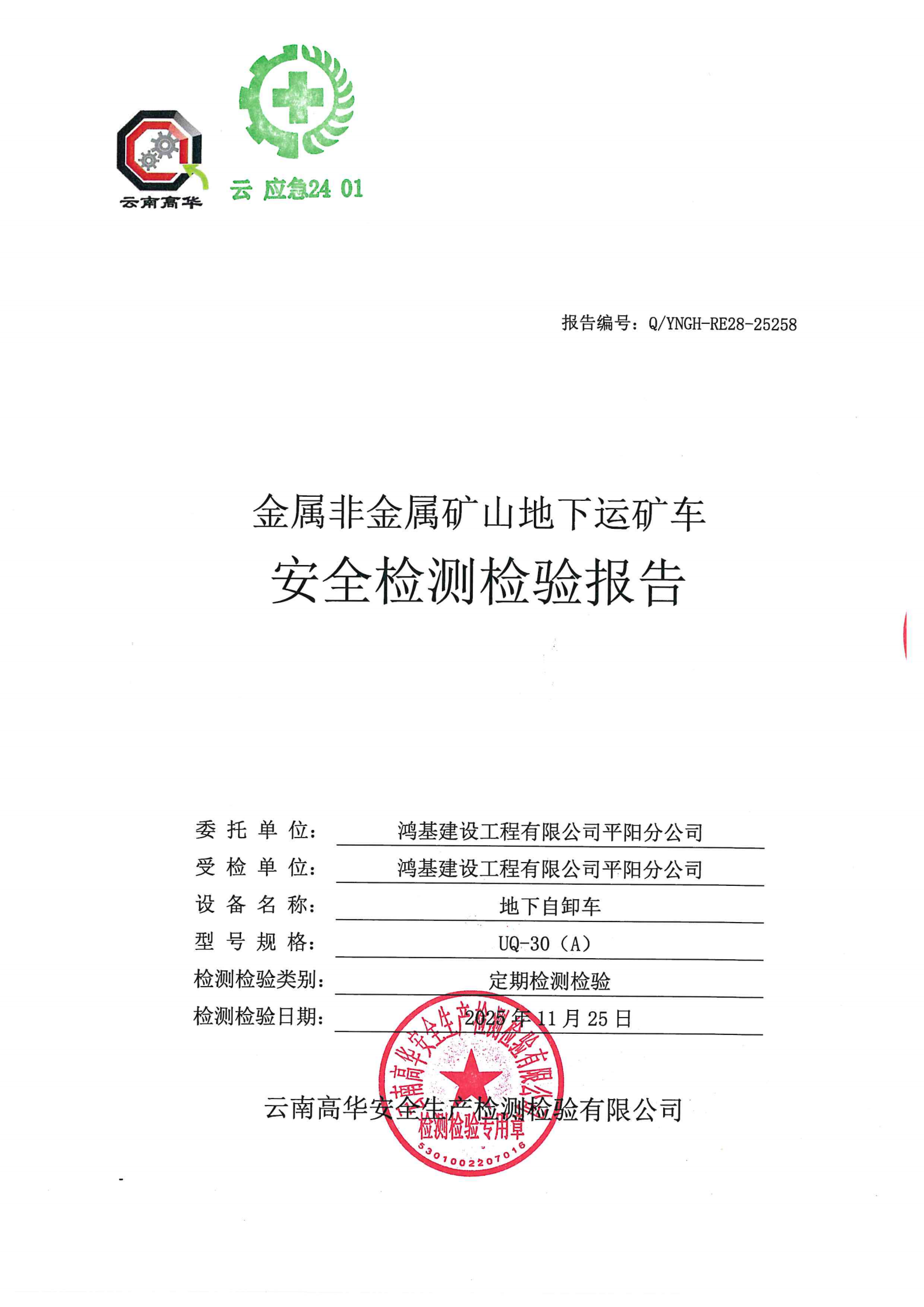 金属非金属矿山地下运矿车安全检测检验报告