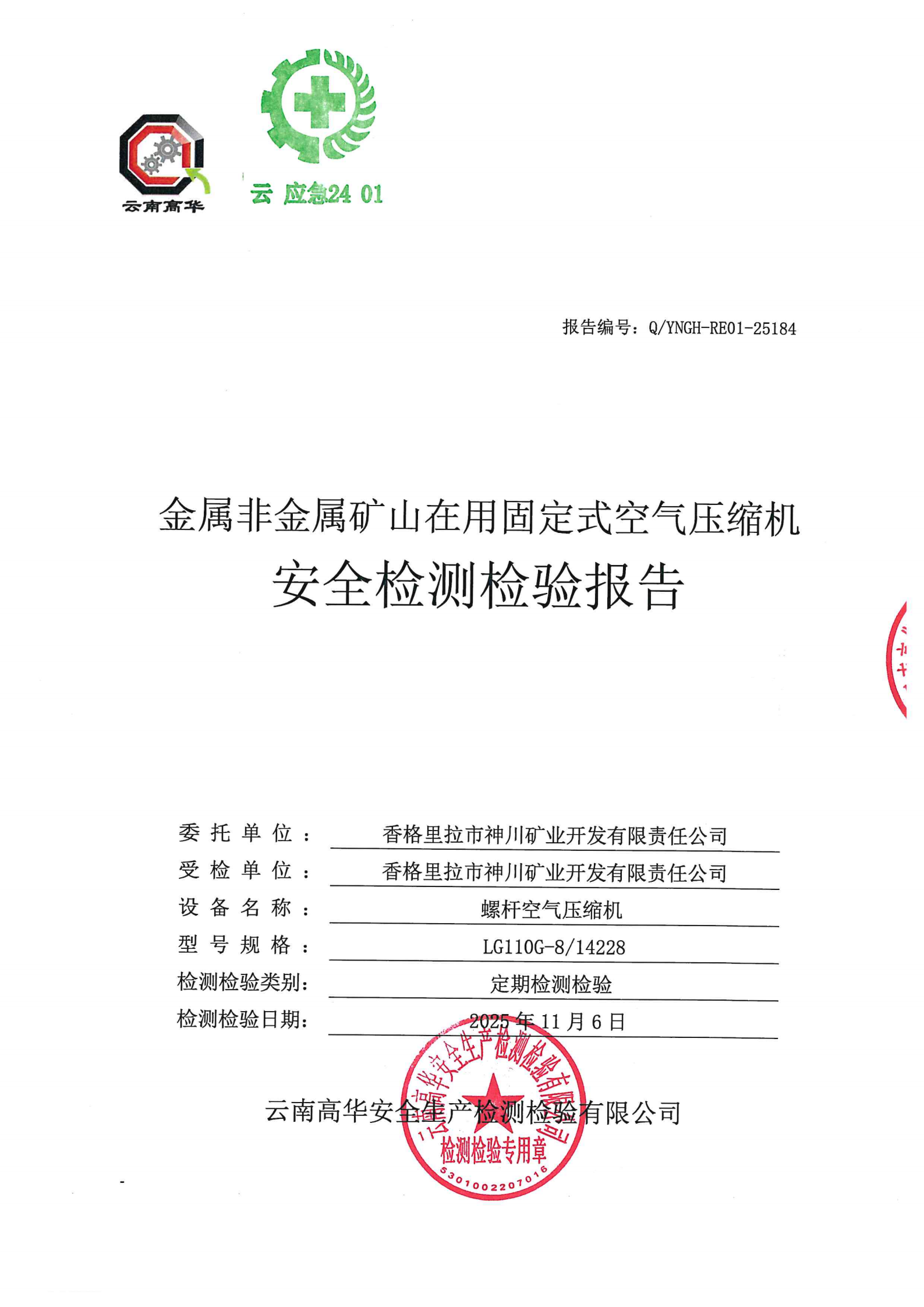金属非金属矿山在用固定式空气压缩机安全检测检验报告