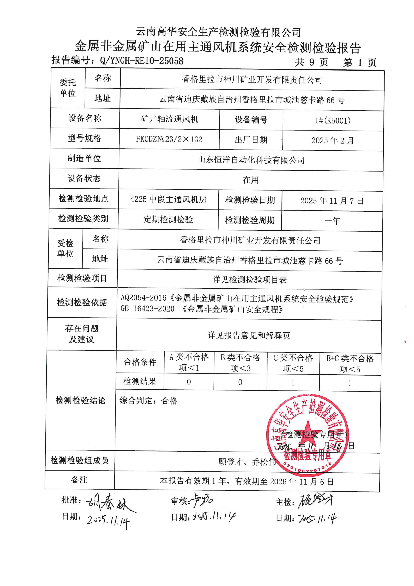 金属非金属矿山在用主通风机系统安全检测检验报告