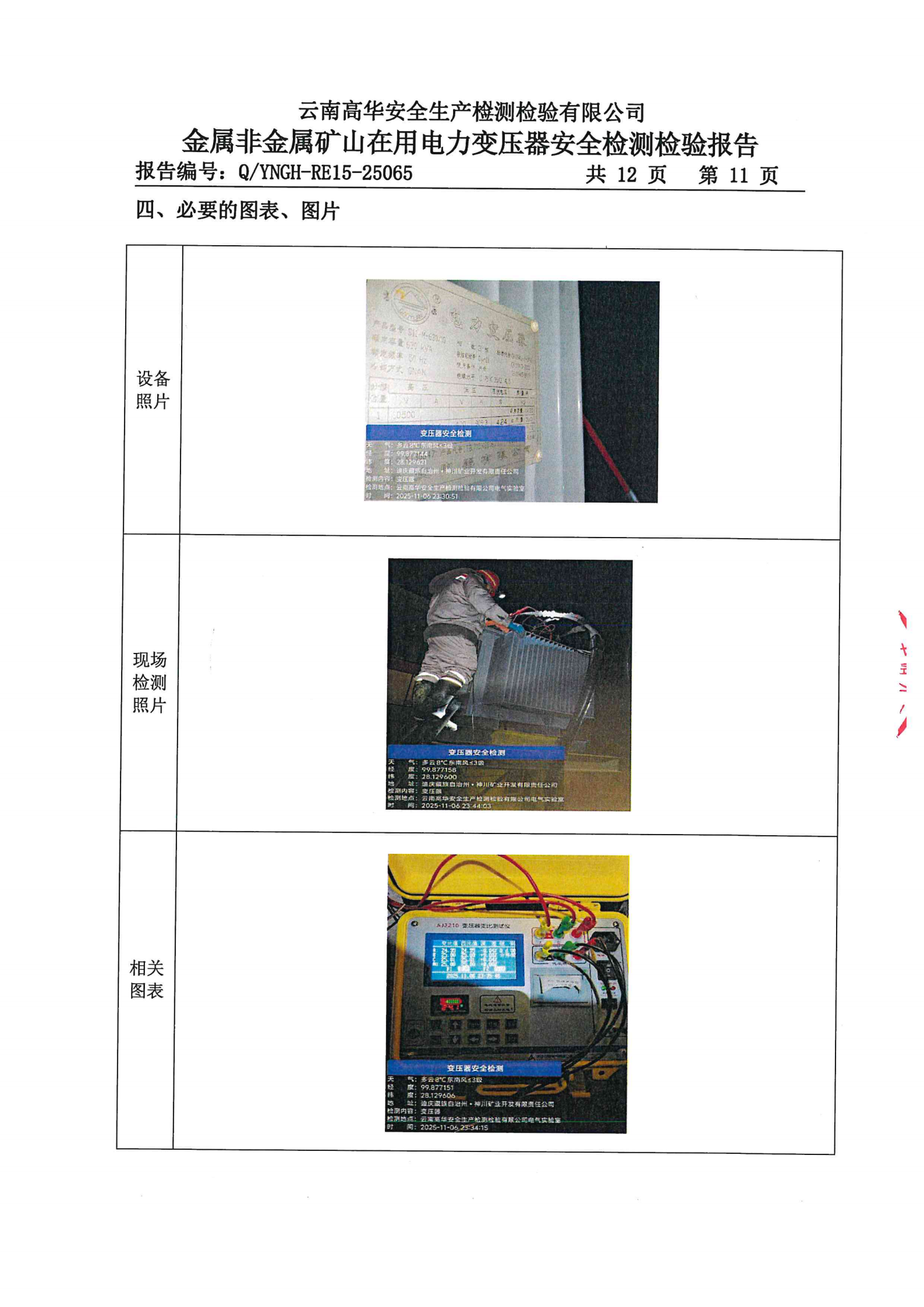 金属非金属矿山在用电力变压器安全检测检验报告