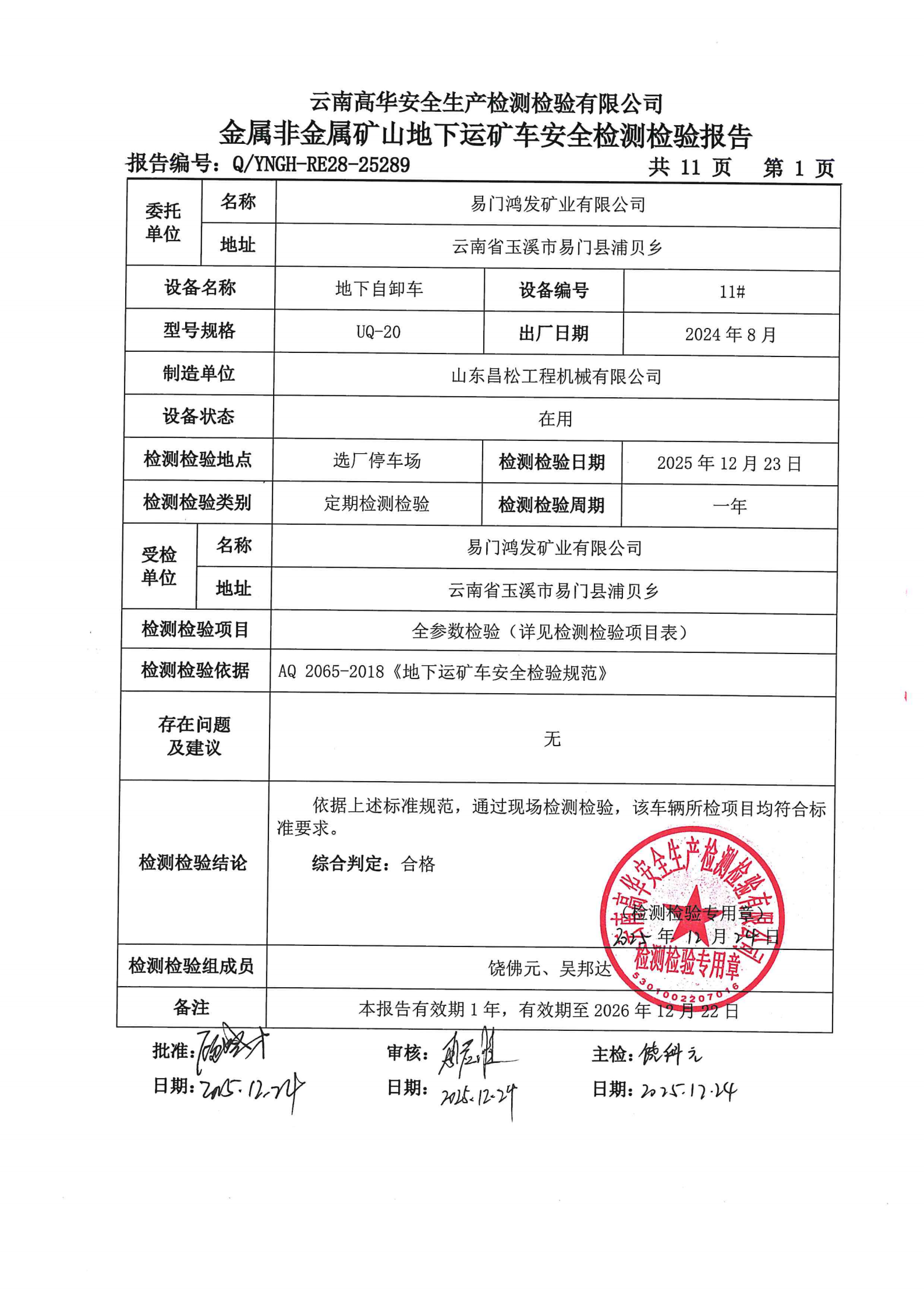 金属非金属矿山在用矿用自卸汽车安全检测检验报告