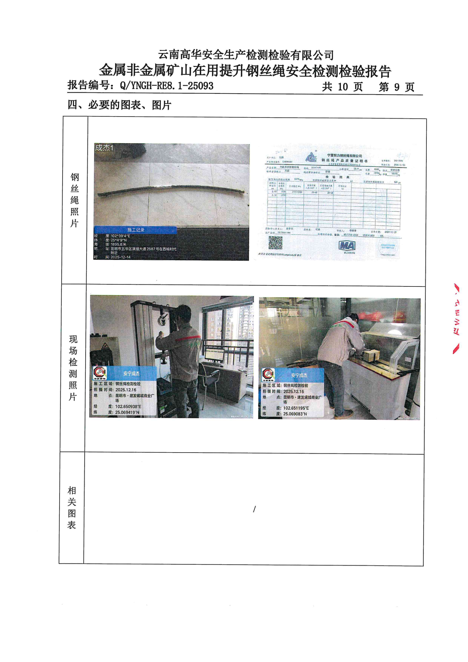 金属非金属矿山在用提升钢丝绳安全检测检验报告