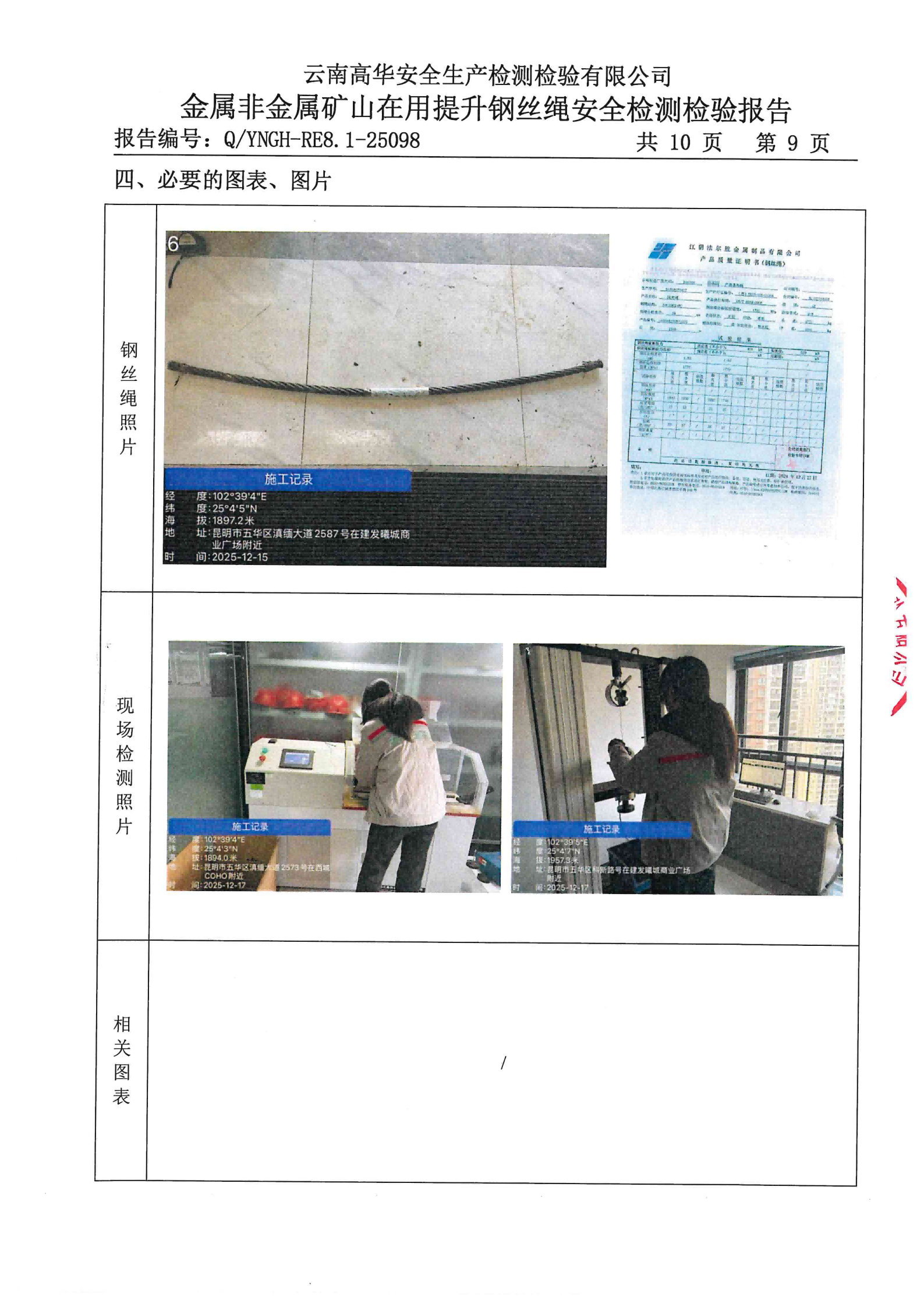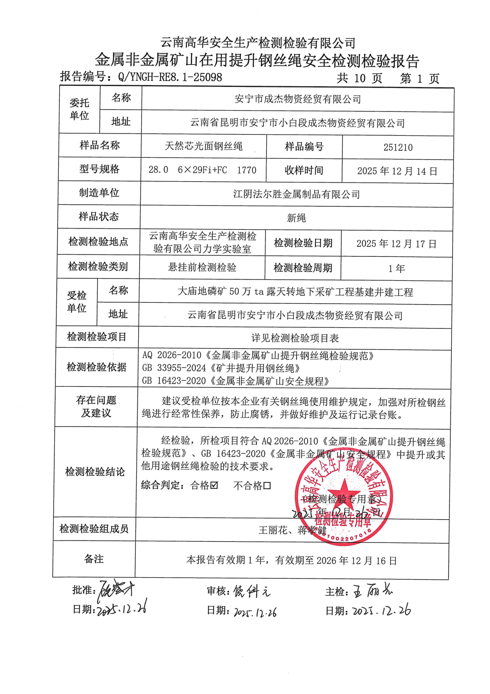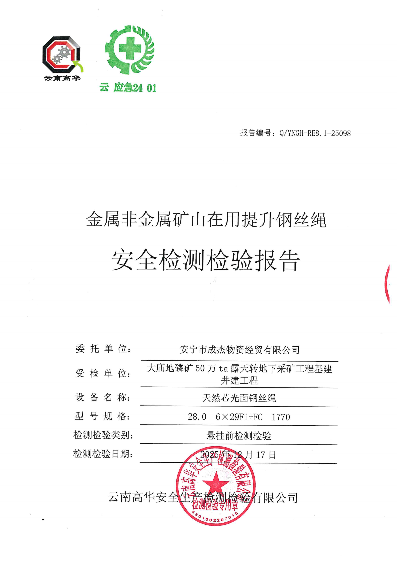 金属非金属矿山在用提升钢丝绳安全检测检验报告