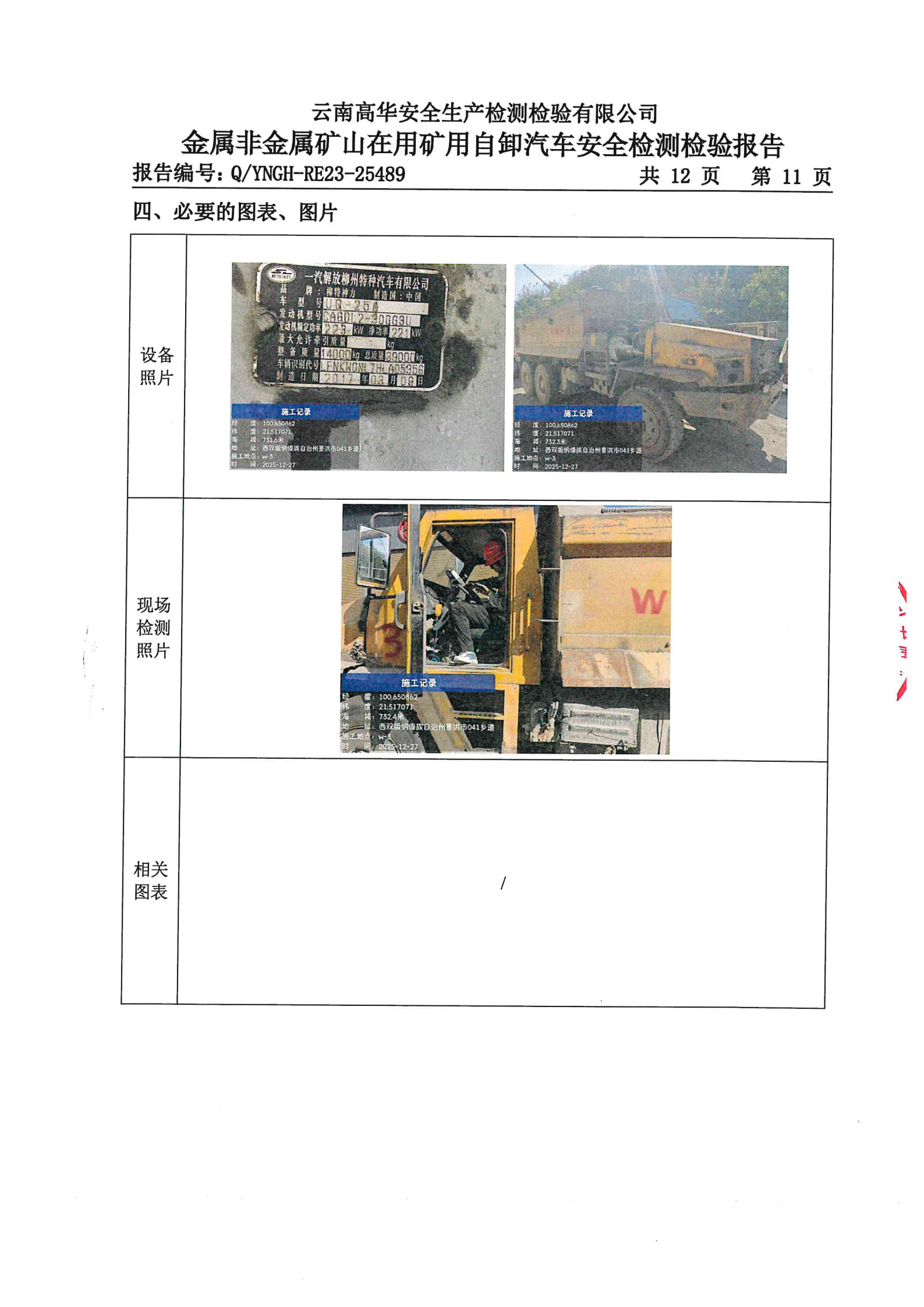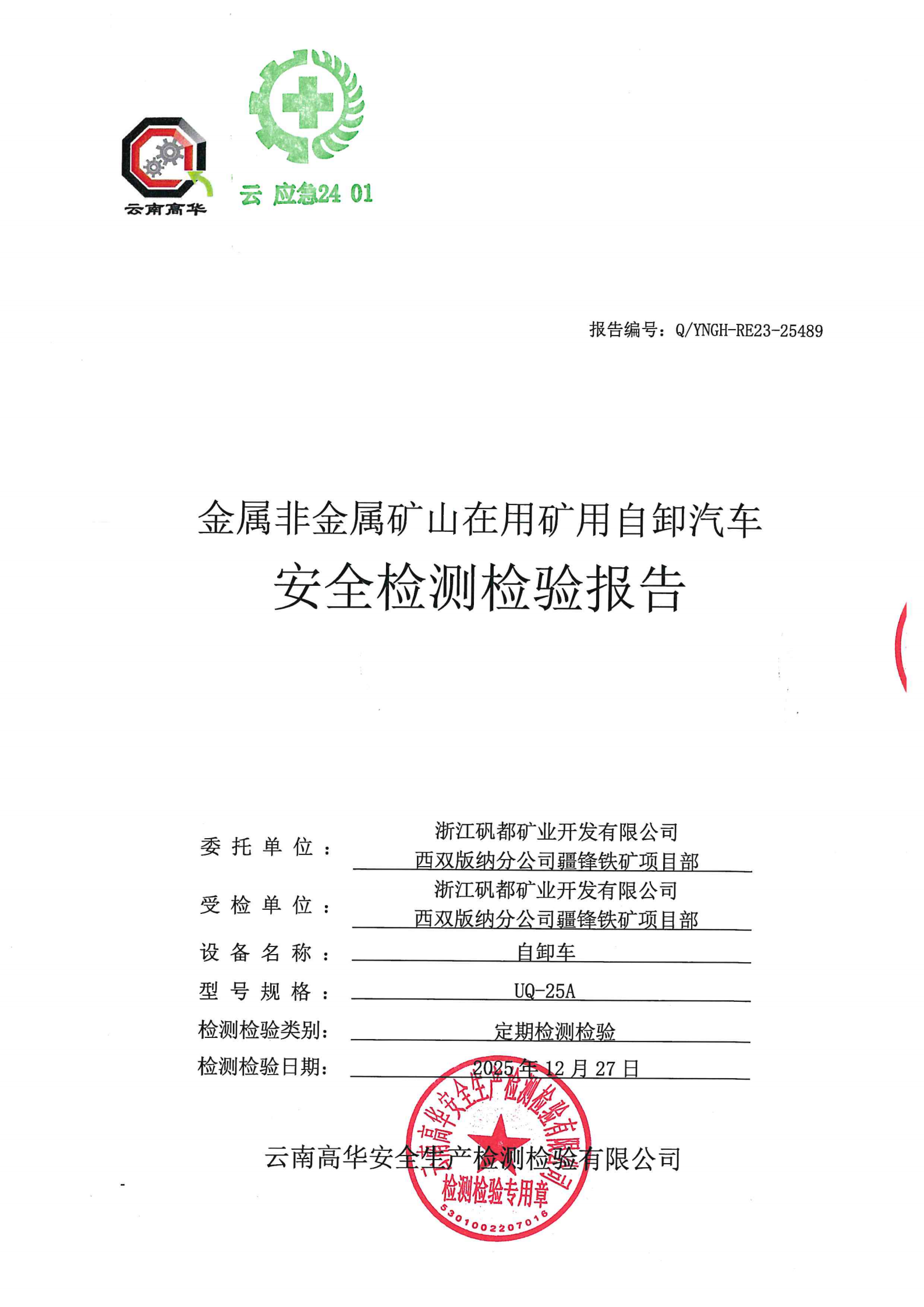 金属非金属矿山在用矿用自卸汽车安全检测检验报告