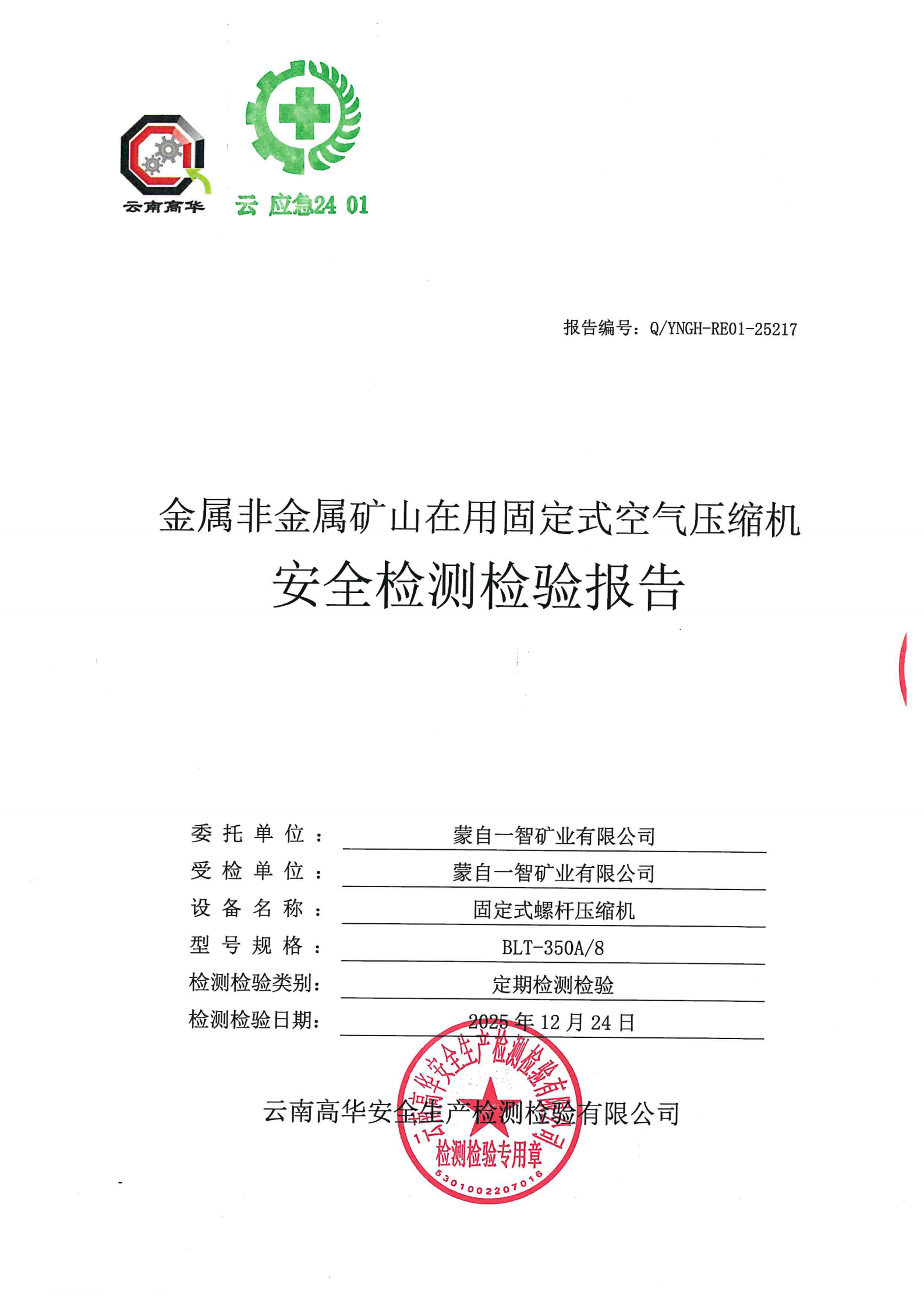 金属非金属矿山在用固定式空气压缩机安全检测检验报告