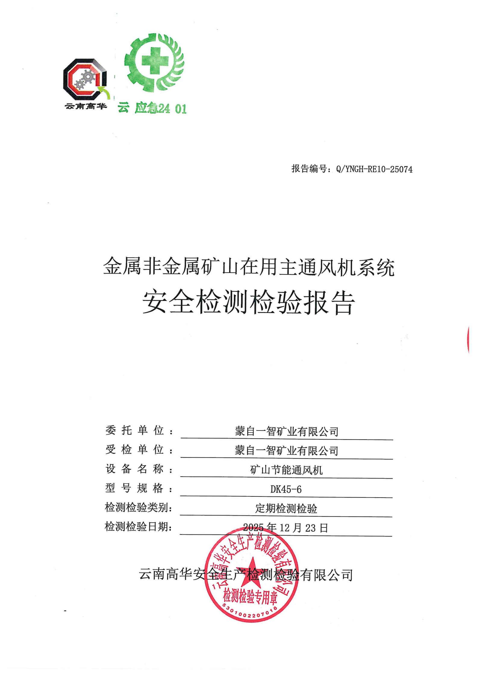 金属非金属矿山在用主通风机系统安全检测检验报告